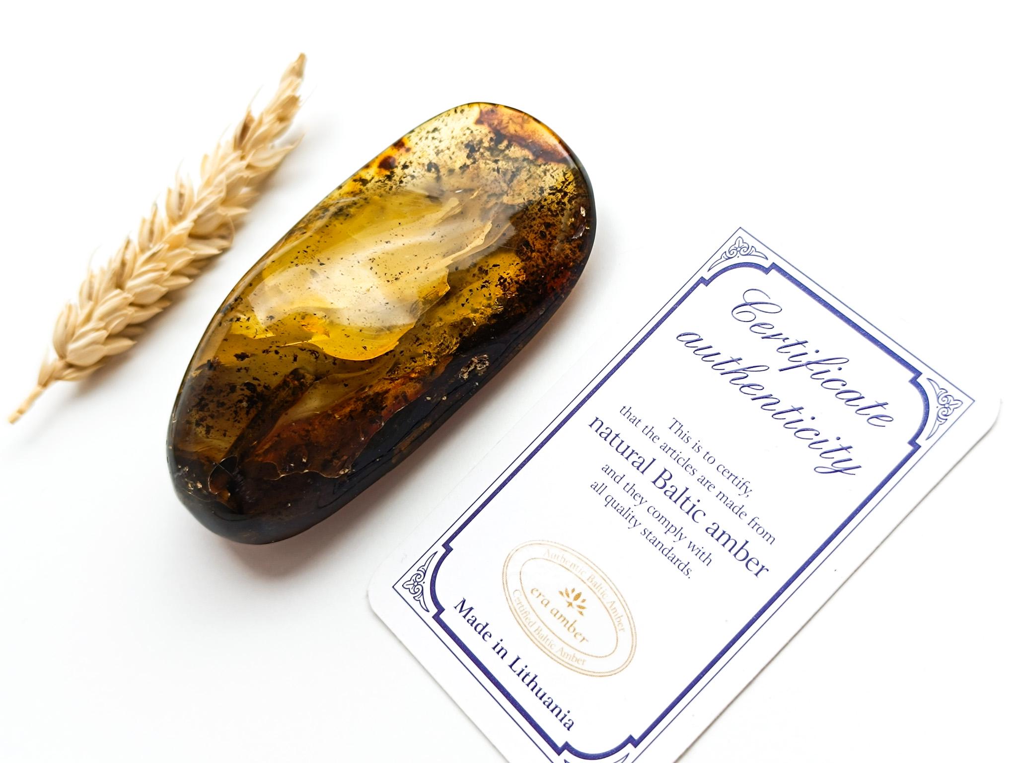 100% Genuine Baltic Amber stone. This amber stone is perfectly suitable for display and pendant making.All amber stones we use are genuine, authentic, natural Baltic amber stones that are being collected from the Baltic sea.Item will come with an authenticity certificate and in a gift box.