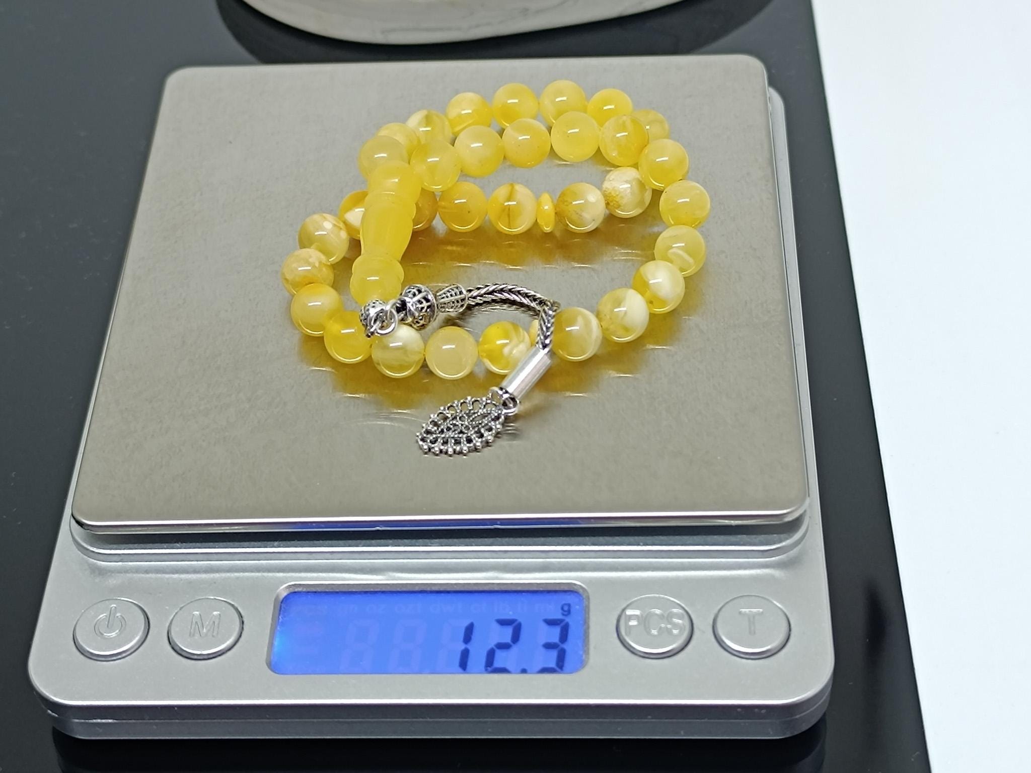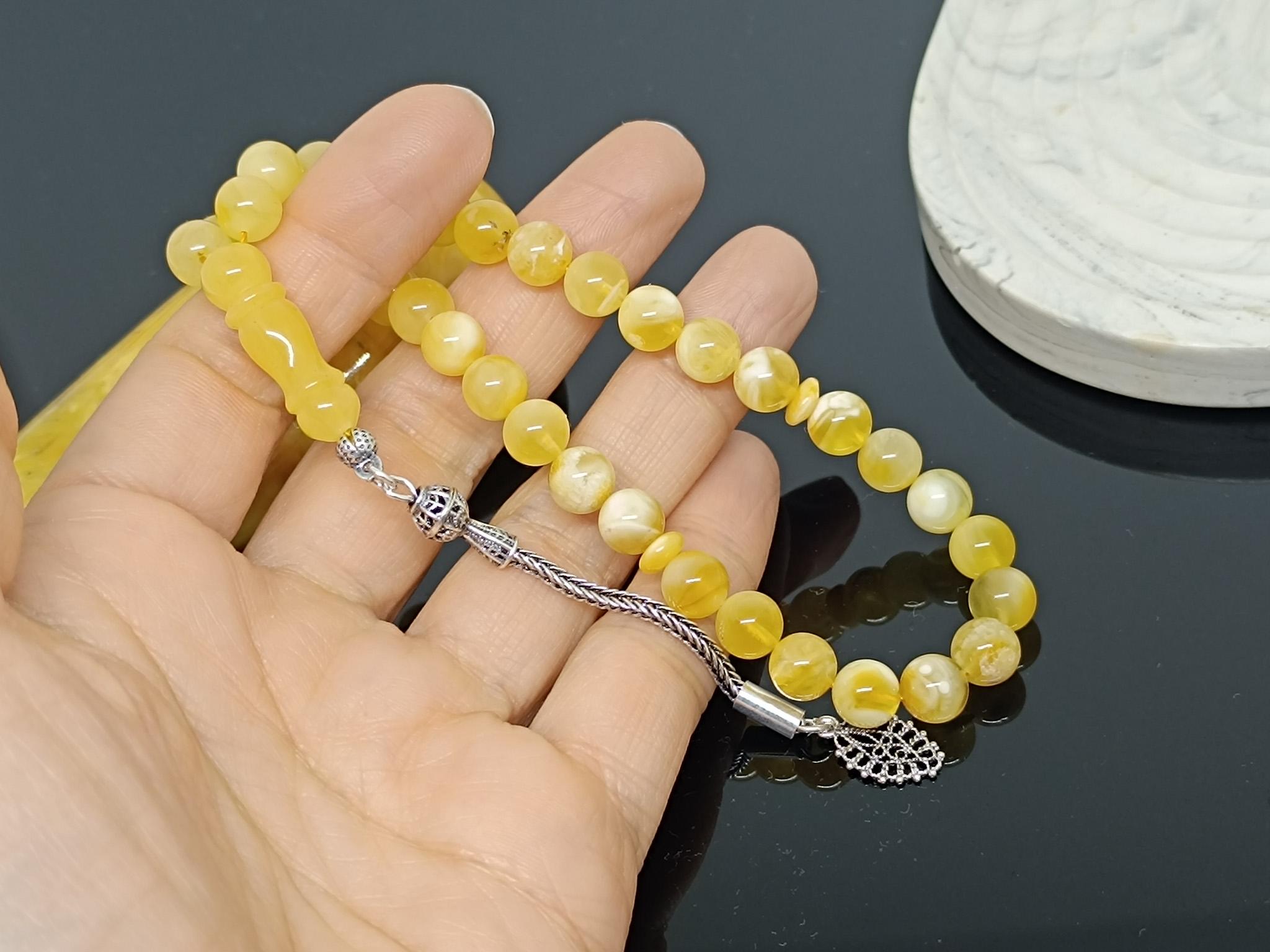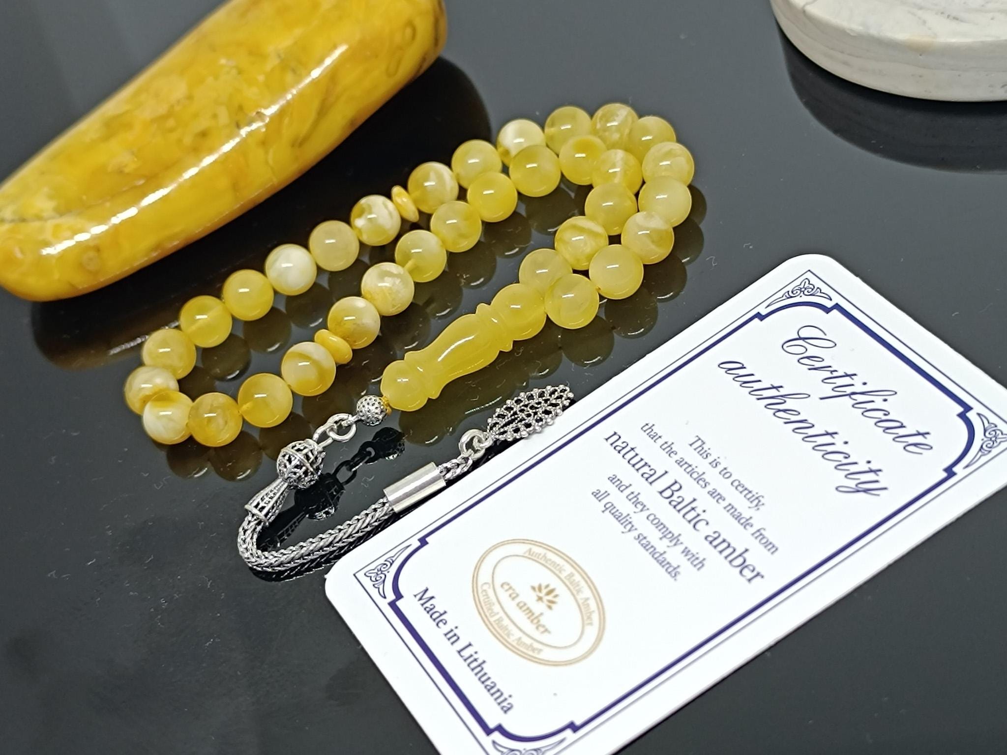 Natural Baltic Amber Islamic Rosary, 33 Beads, 925 Sterling Silver, Prayer Tesbih