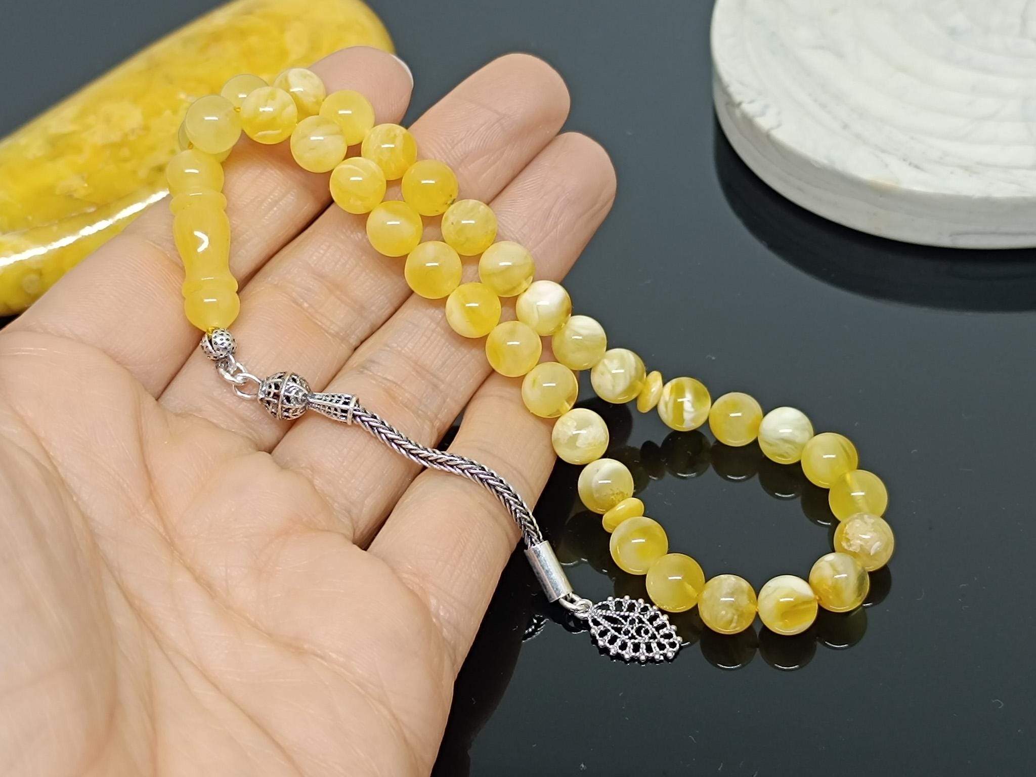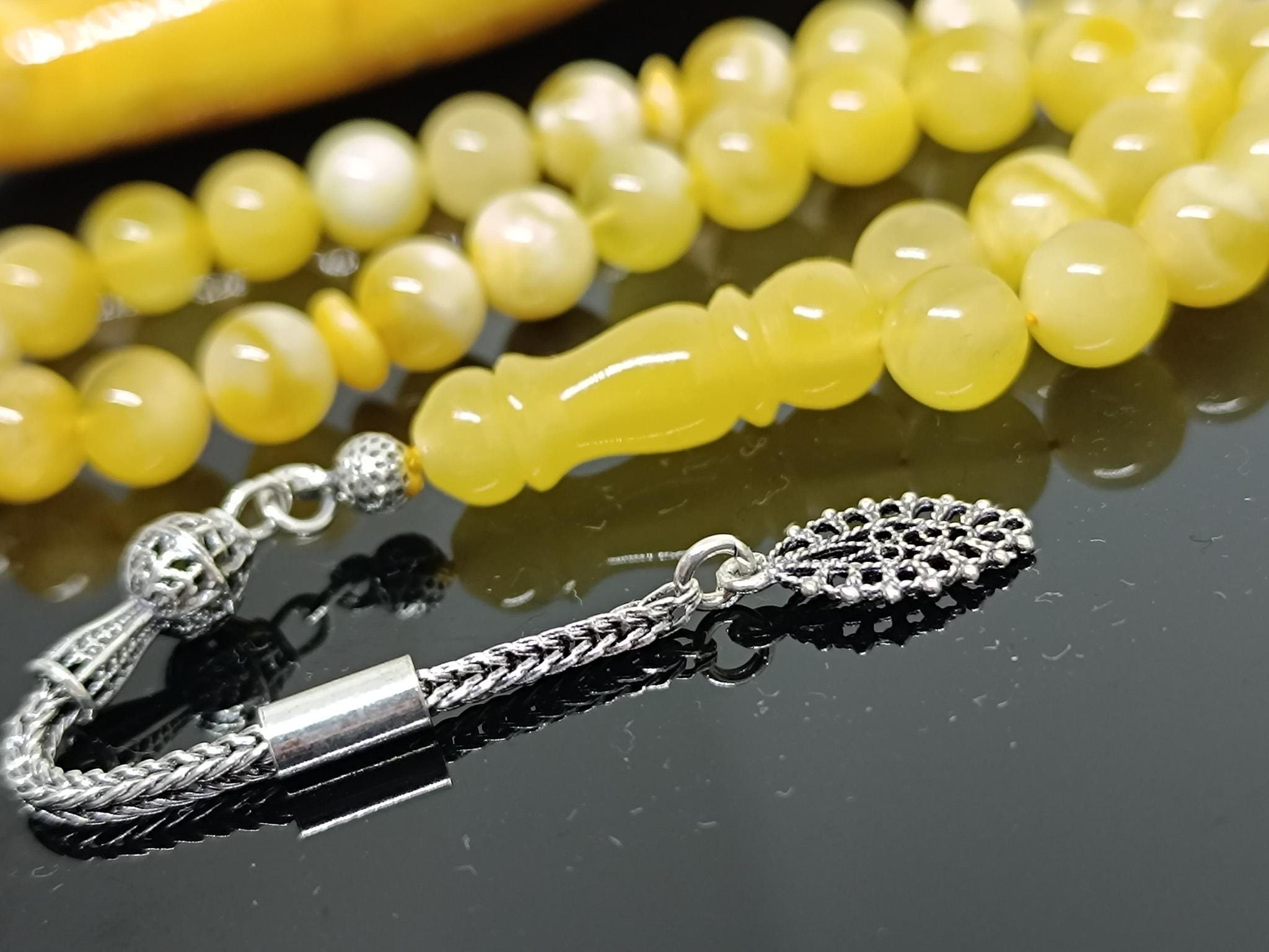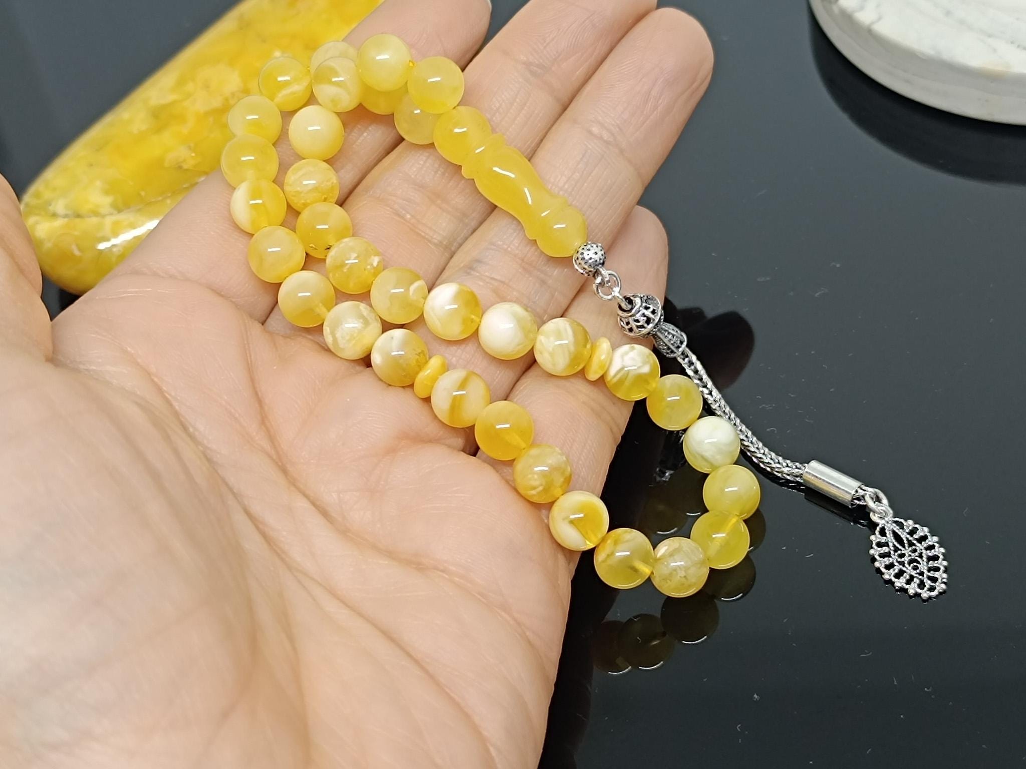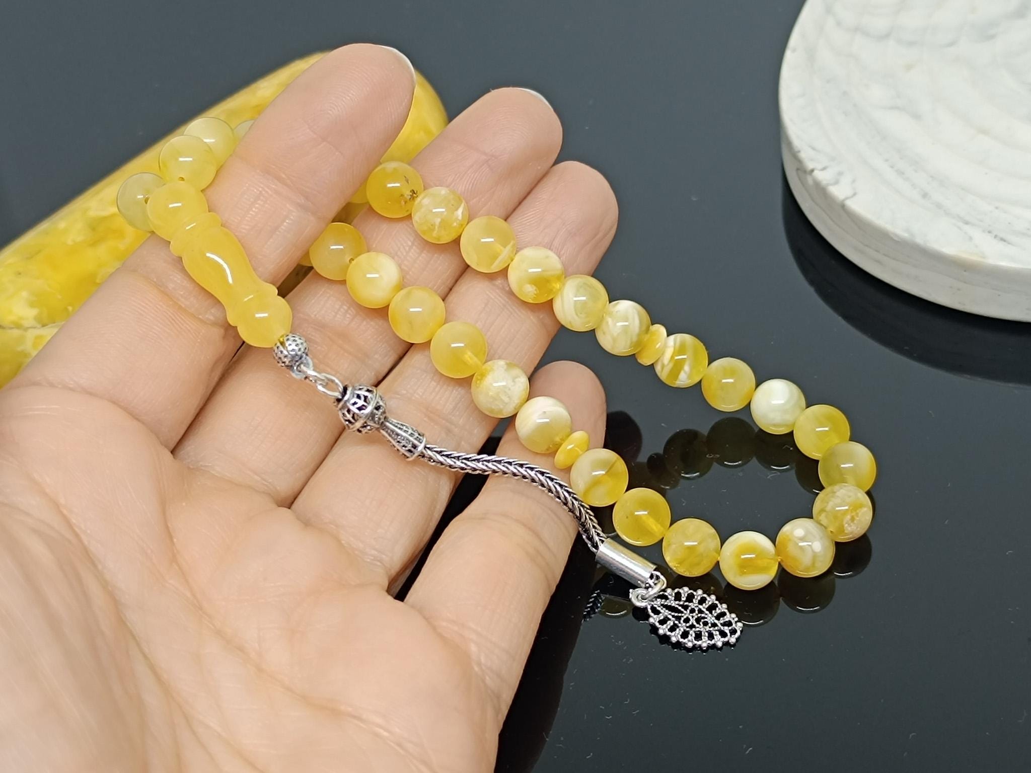 Natural Baltic Amber Islamic Rosary, 33 Beads, 925 Sterling Silver, Prayer Tesbih