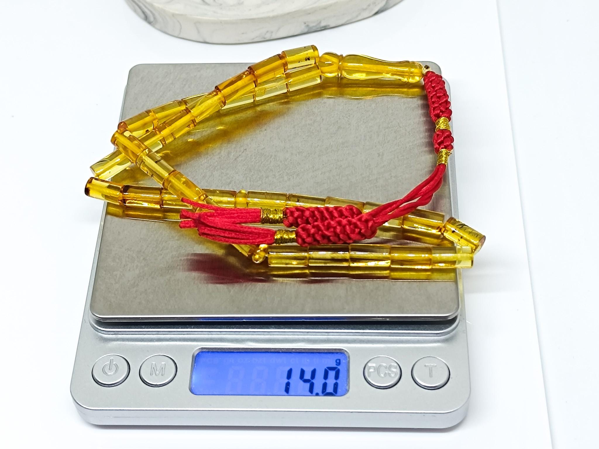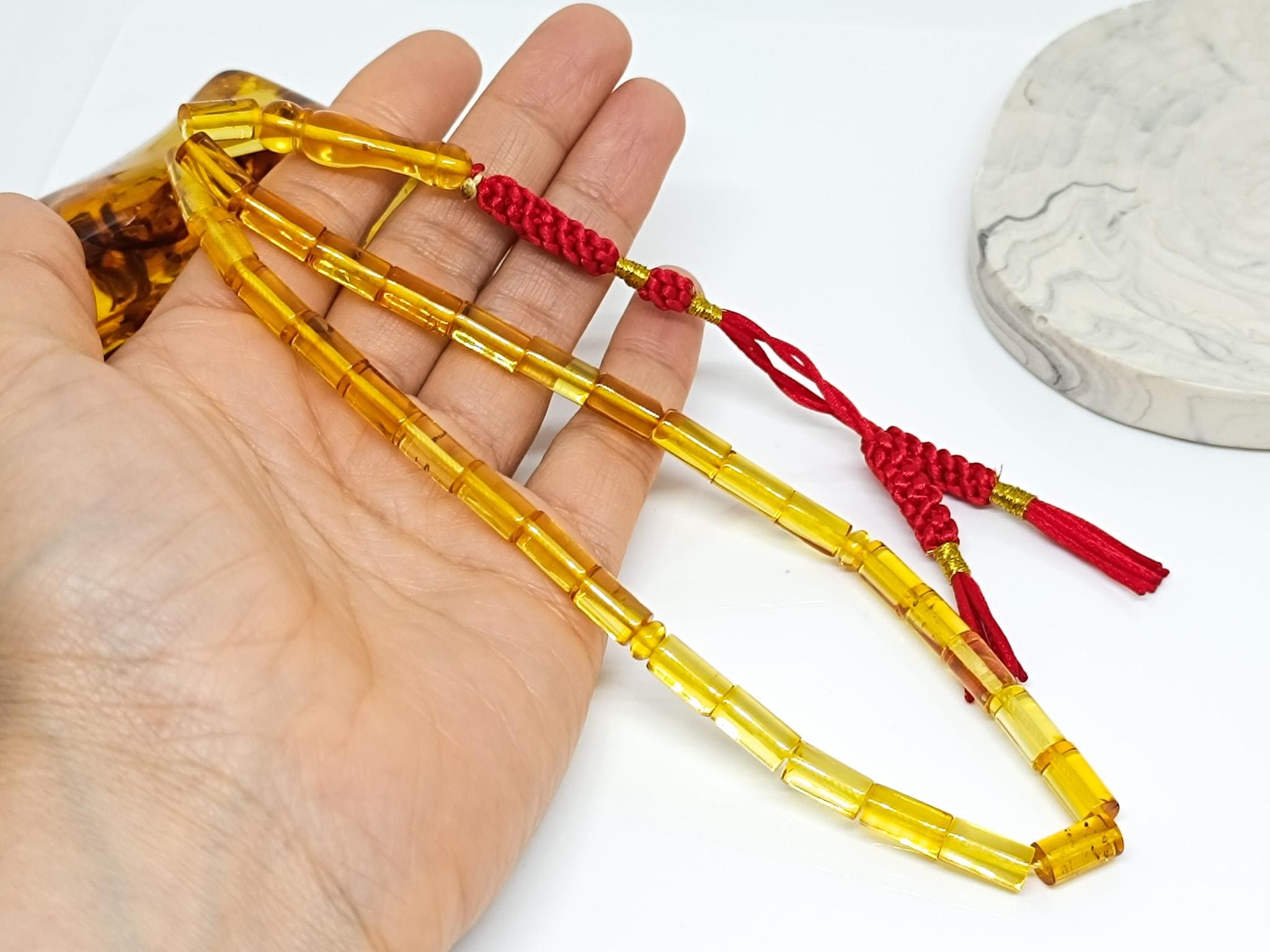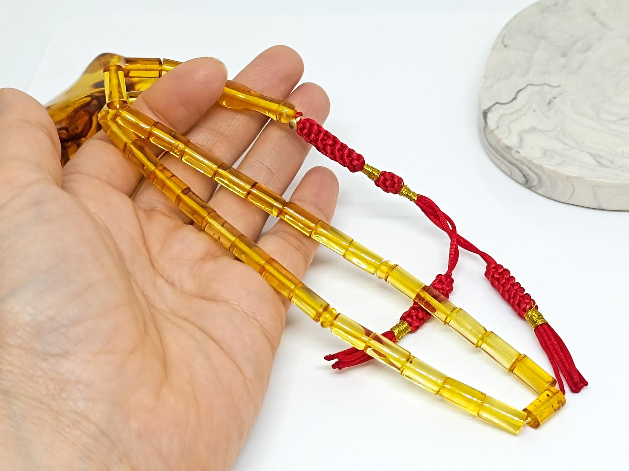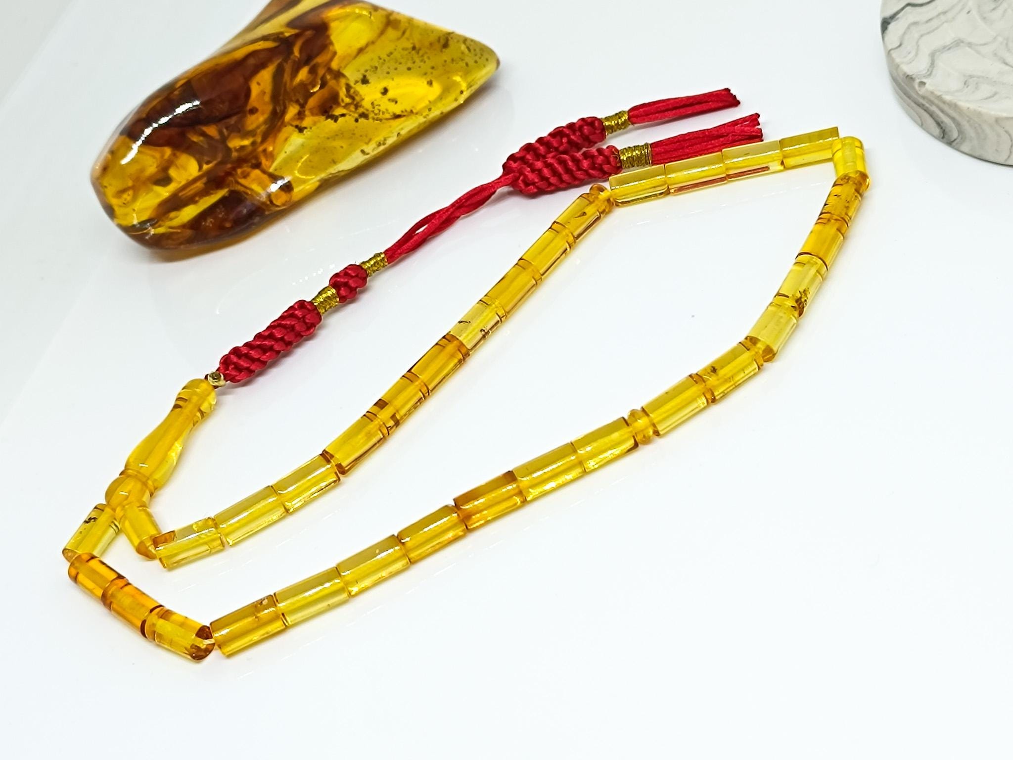 33 Beads Real Authentic Amber Rosary, Natural Baltic Amber Prayer Beads, Kahraman, Kehribar,Genuine Amber Muslim Misbah,13mmx8mm