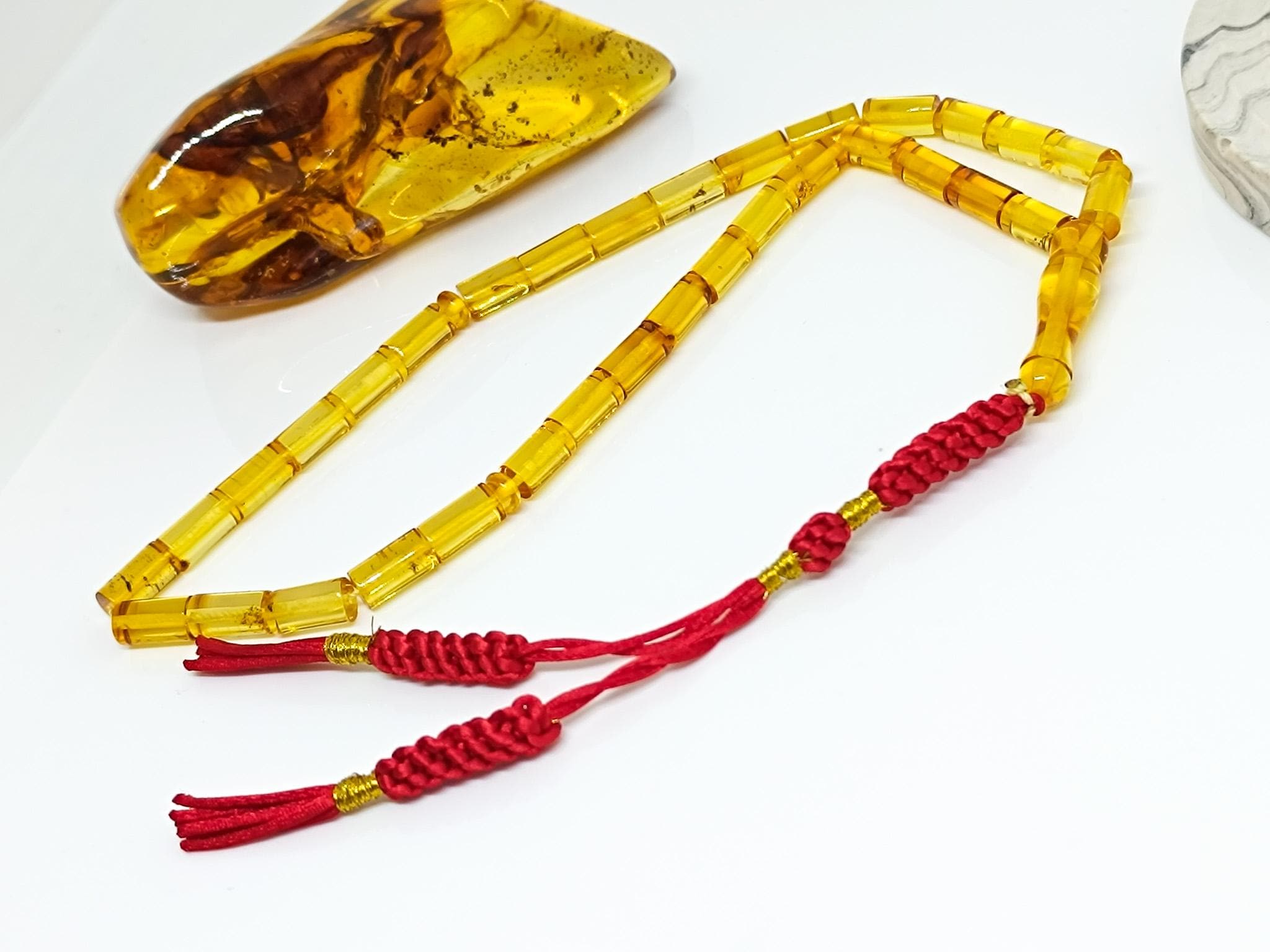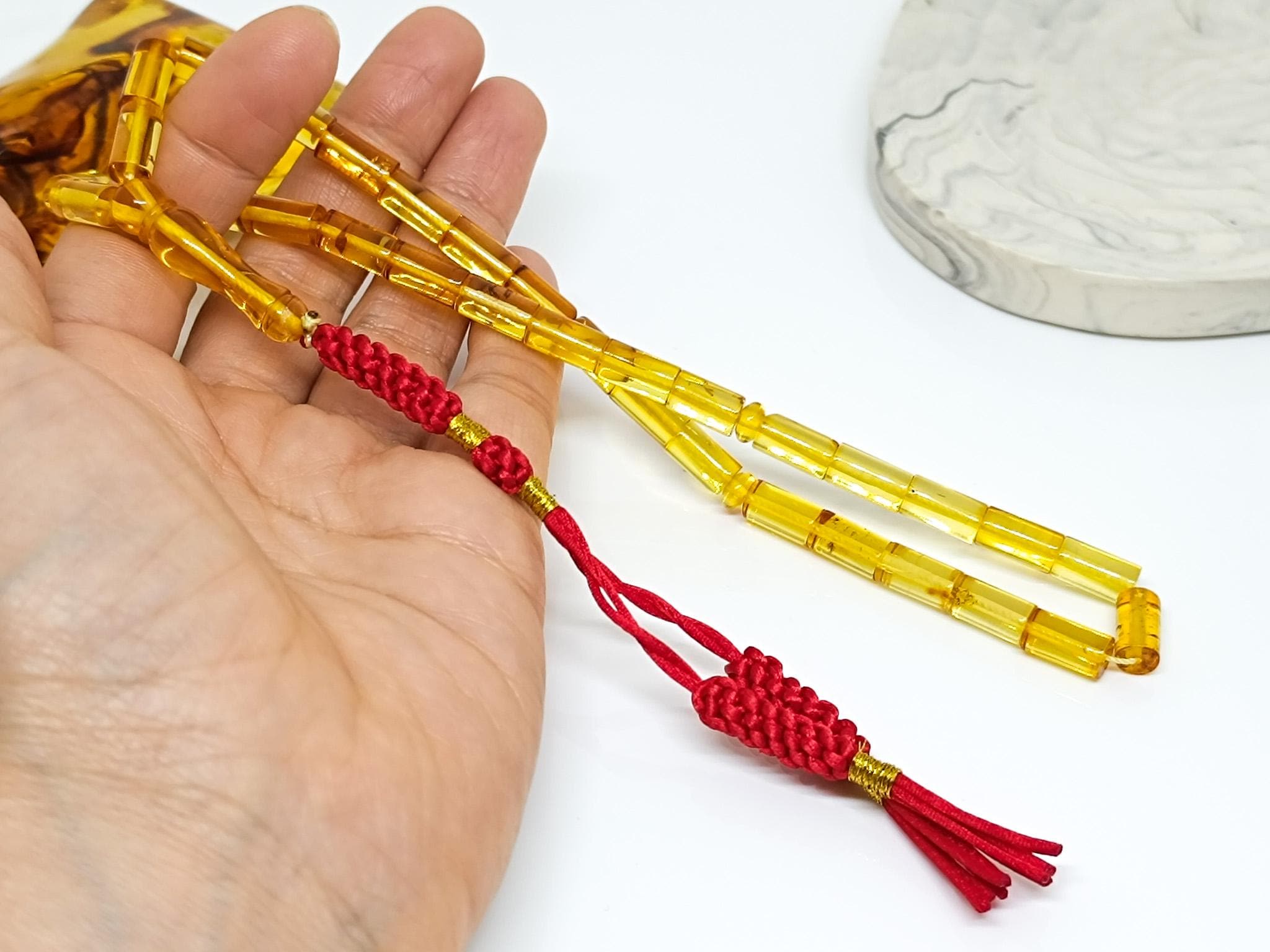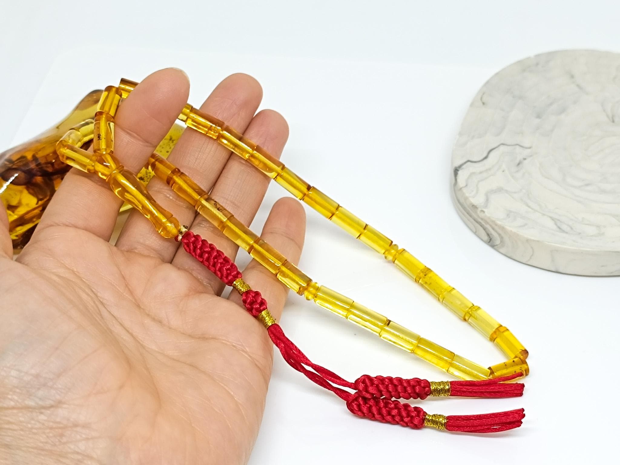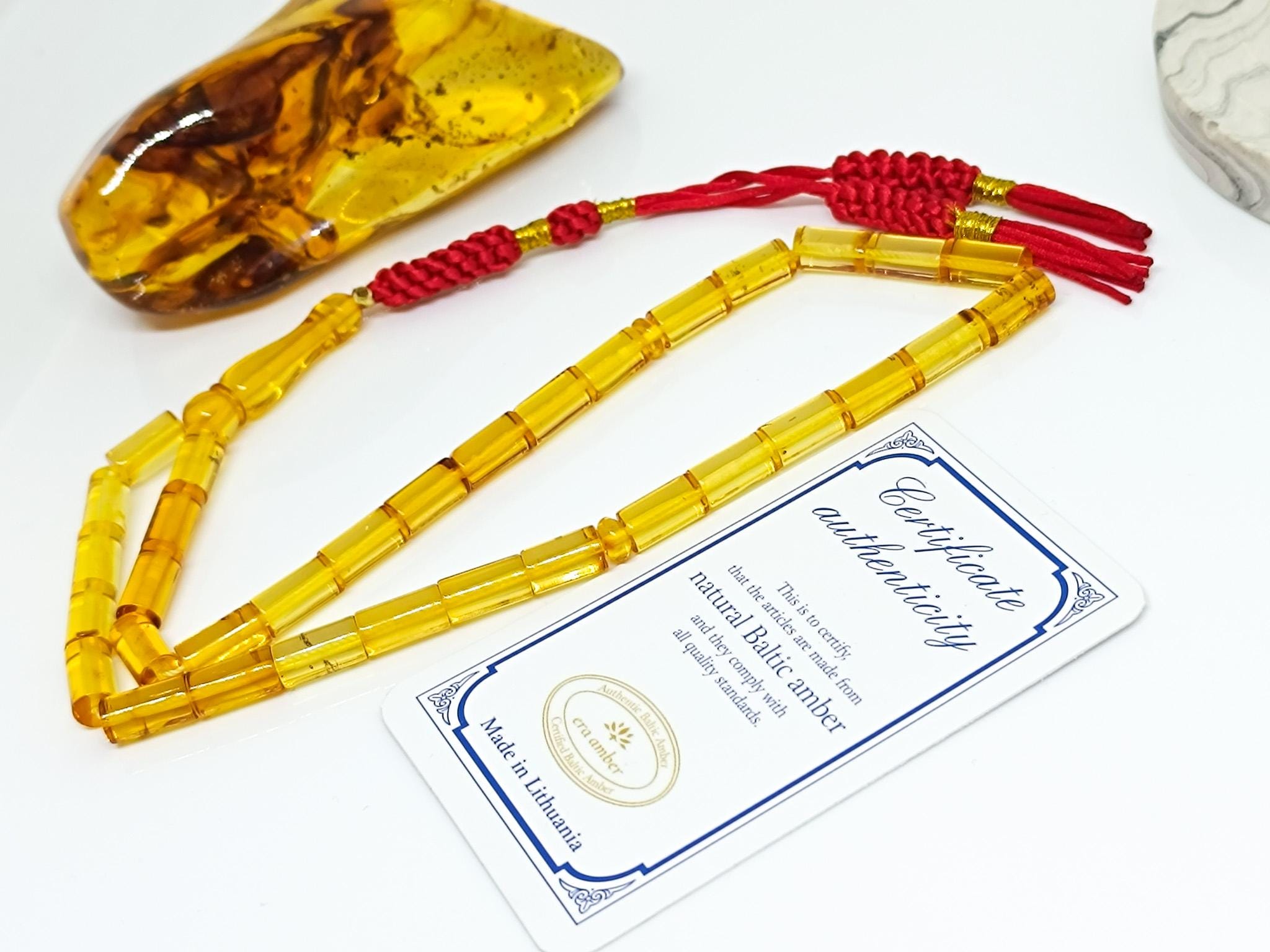 100% Natural Baltic Amber Islamic Prayer 33 Beads. All amber stones are genuine, authentic, natural Baltic amber stones.