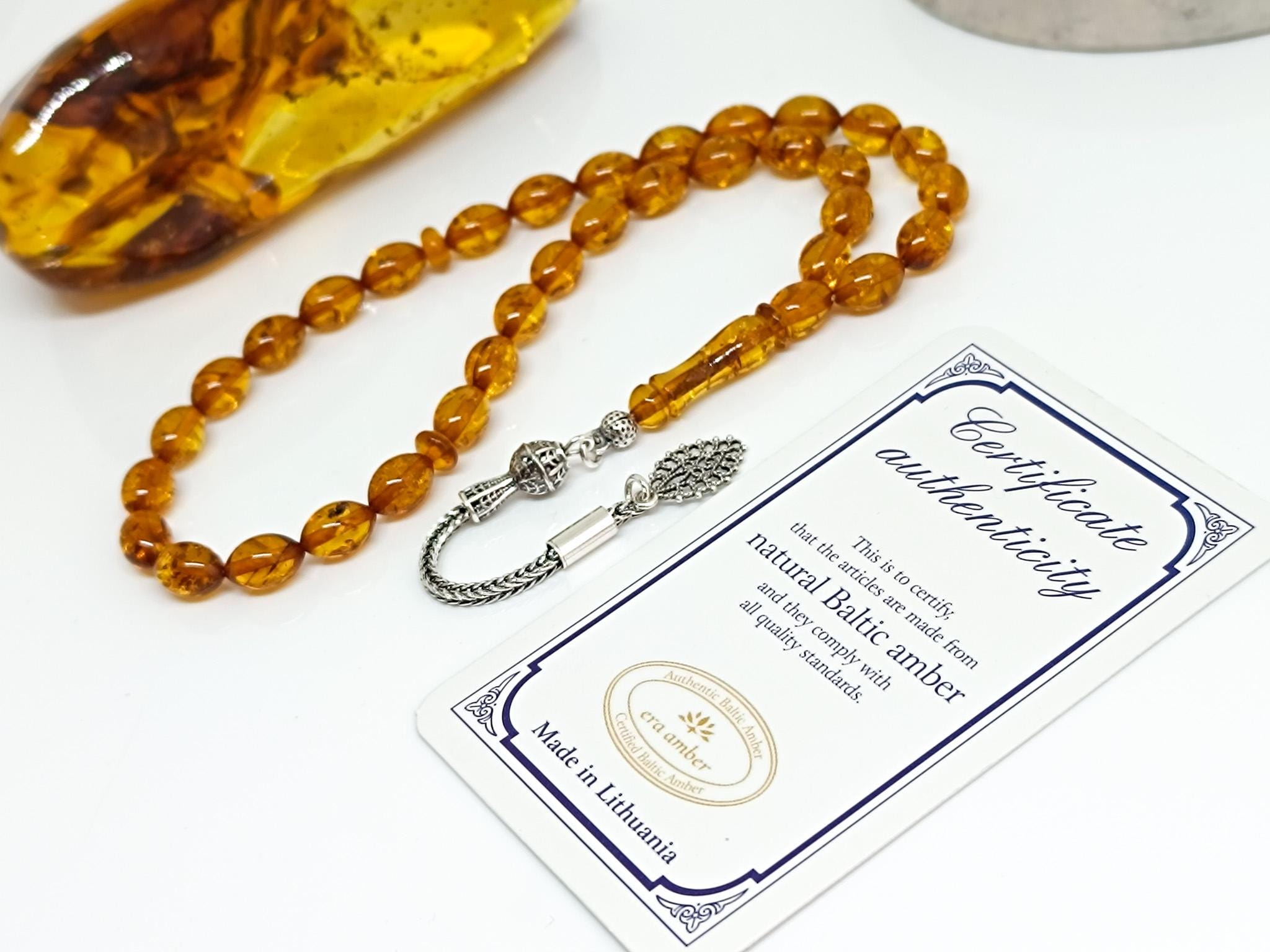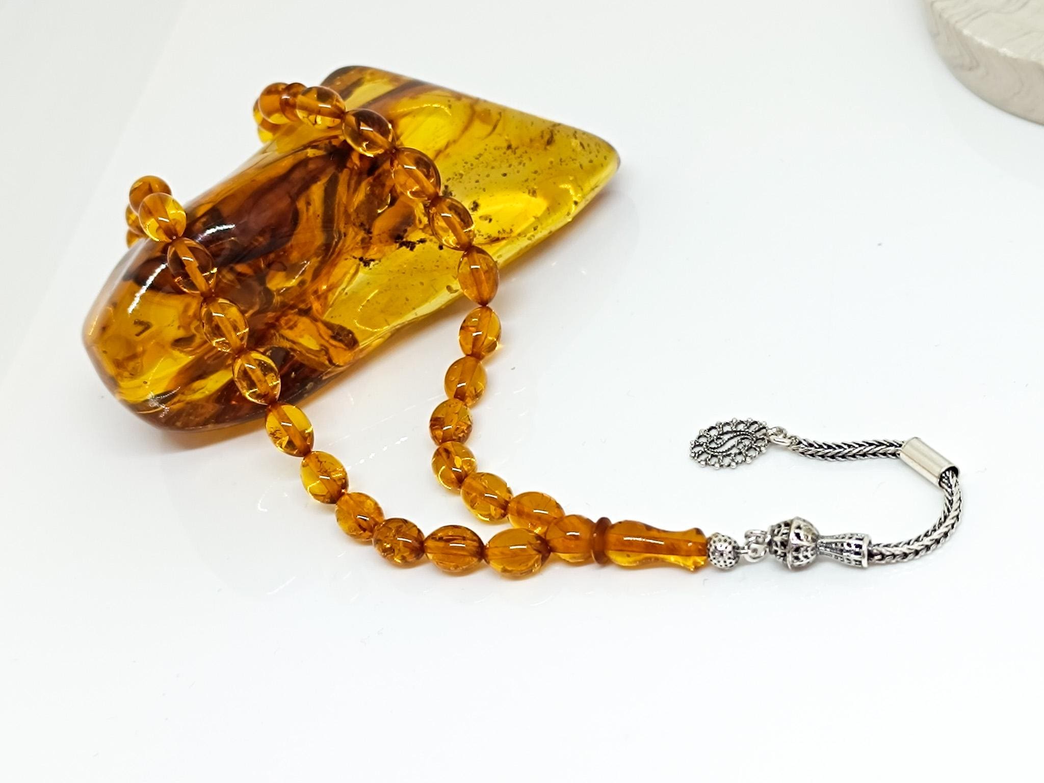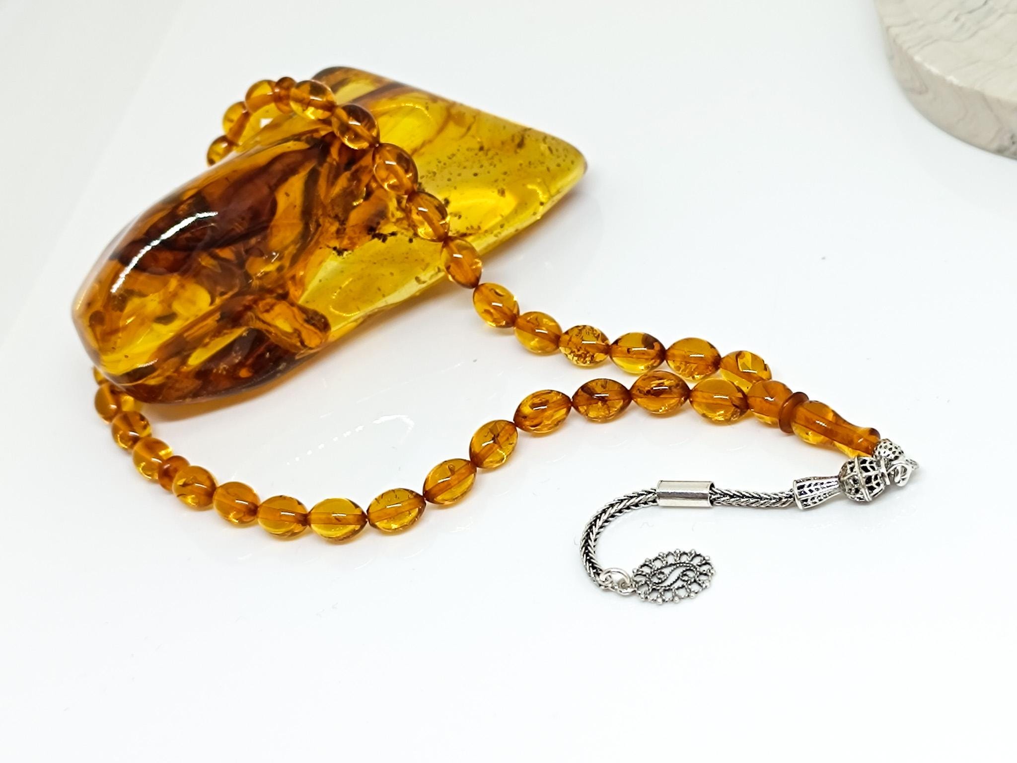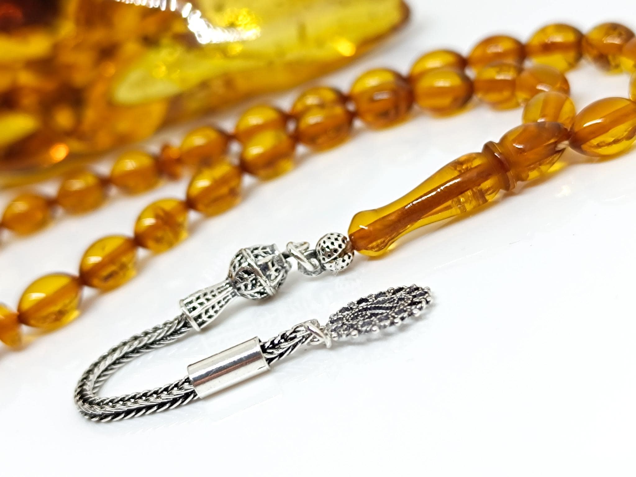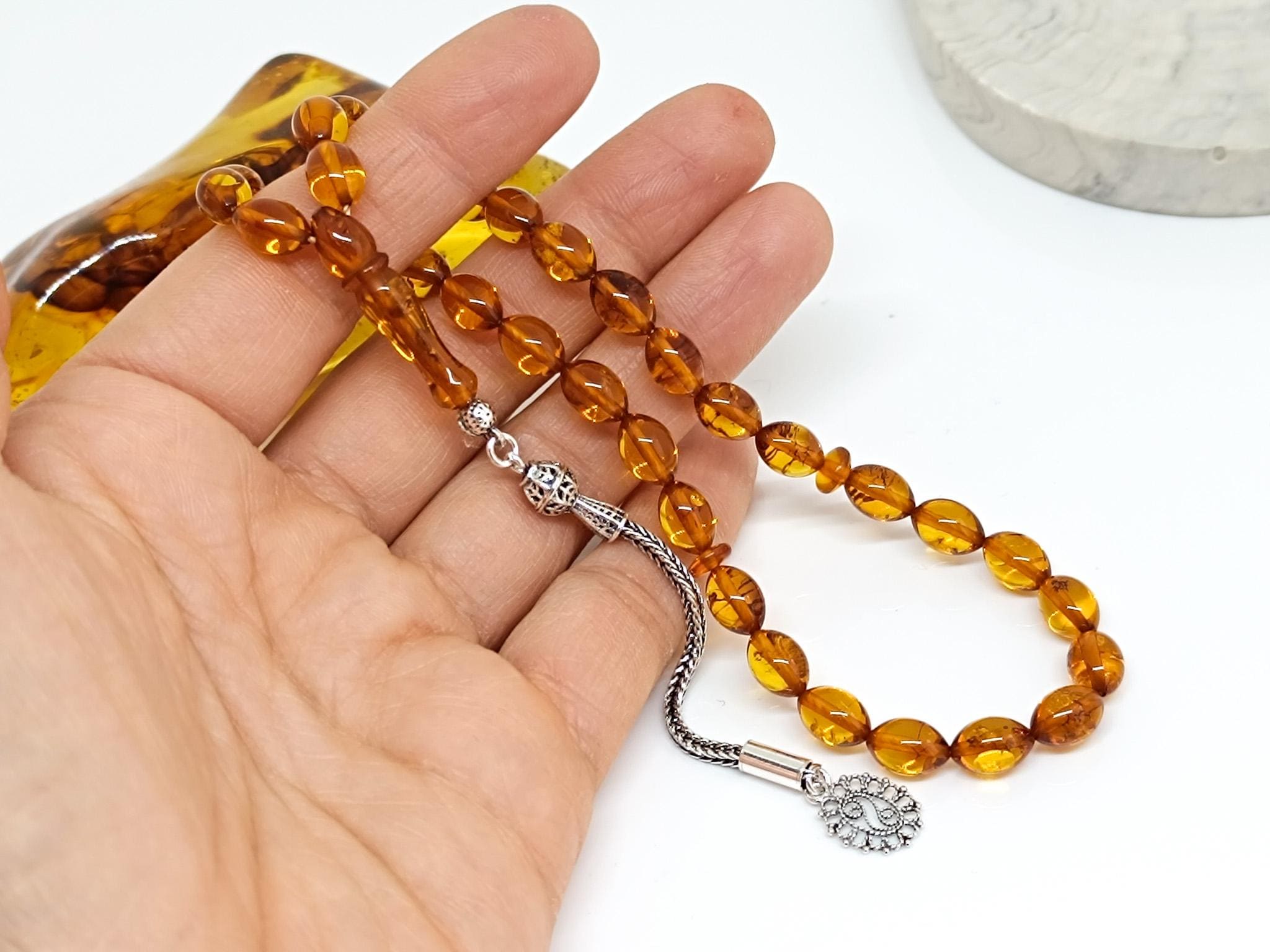100% Natural Baltic Amber Islamic rosary with 33 Beads.This rosary made of real natural Baltic amber. And tassel is 925 sterling silver. All amber stones we use are genuine, authentic, natural Baltic amber stones.