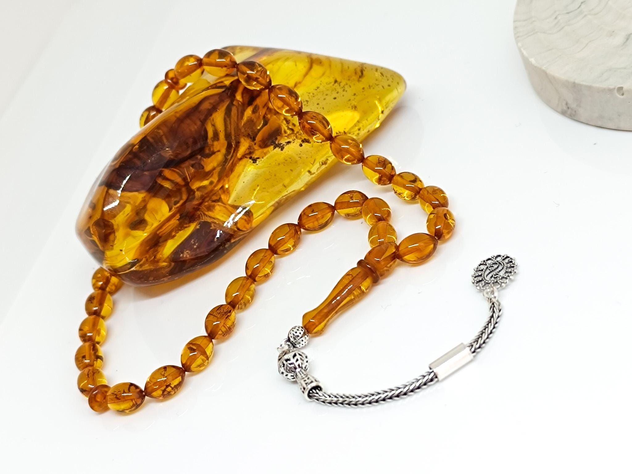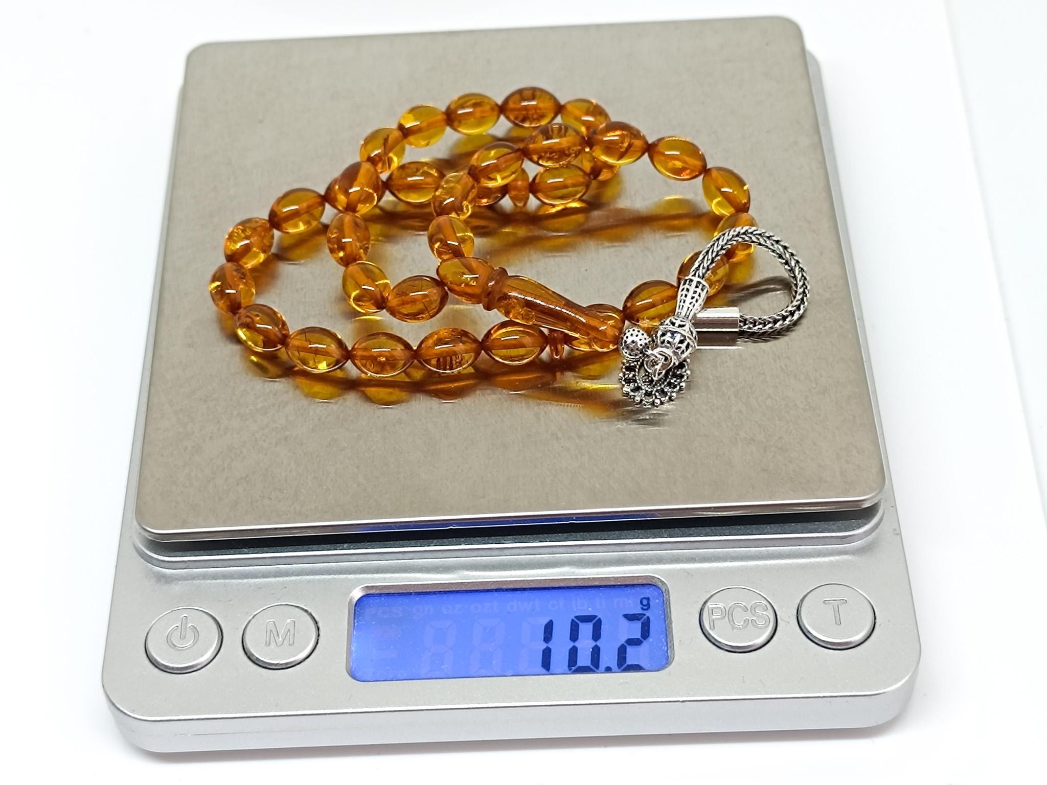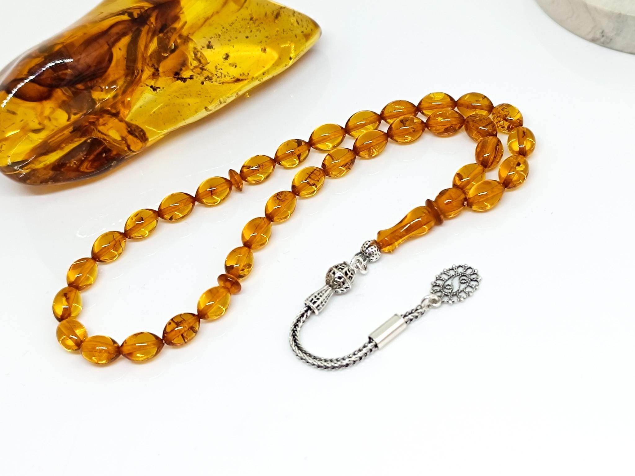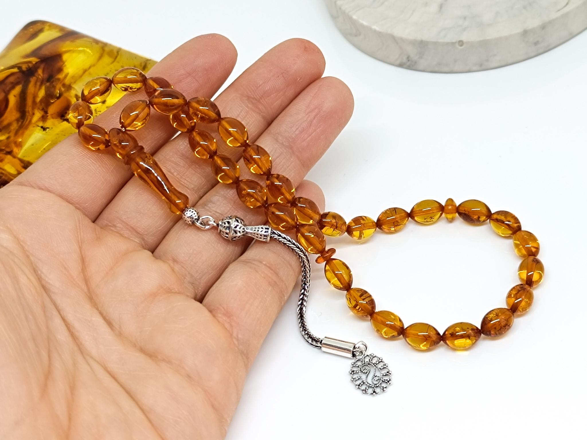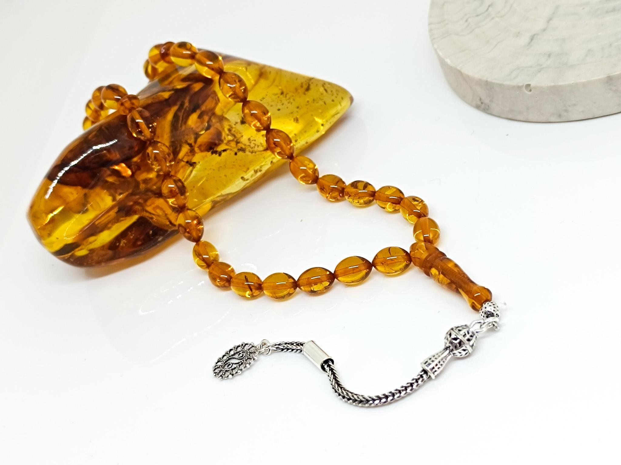 100% Natural Baltic Amber Islamic rosary with 33 Beads.This rosary made of real natural Baltic amber. And tassel is 925 sterling silver. All amber stones we use are genuine, authentic, natural Baltic amber stones.