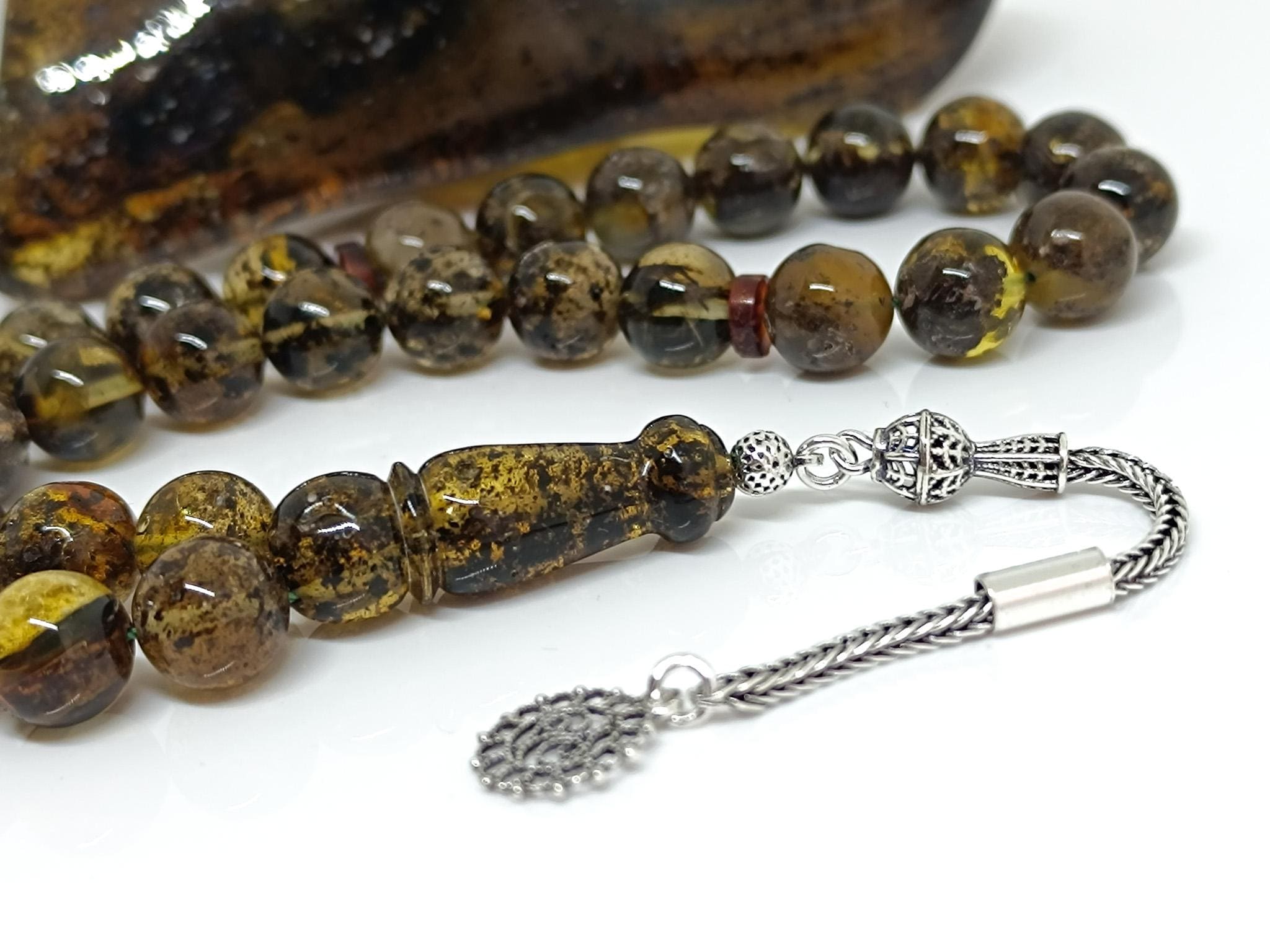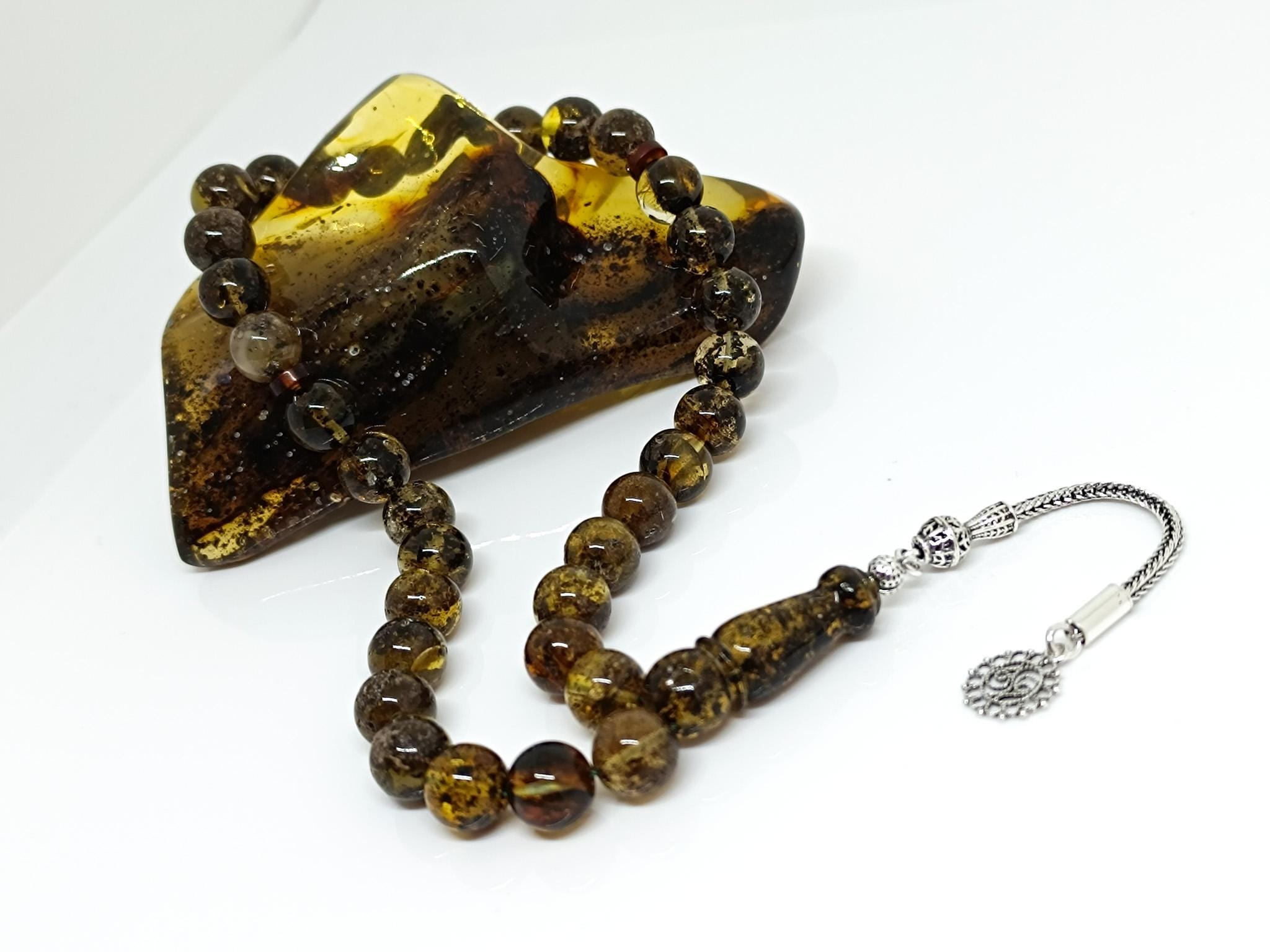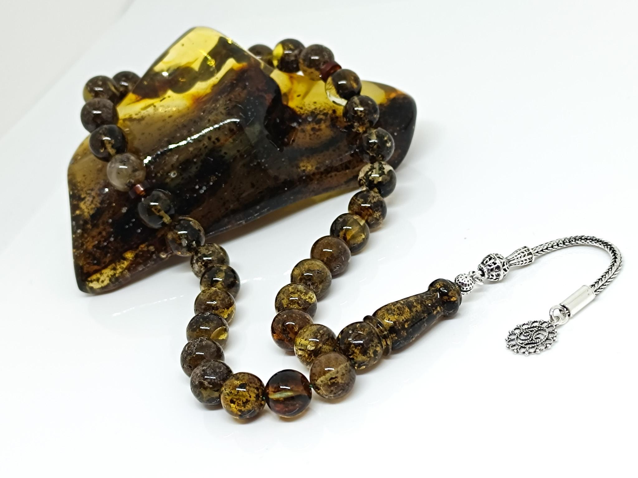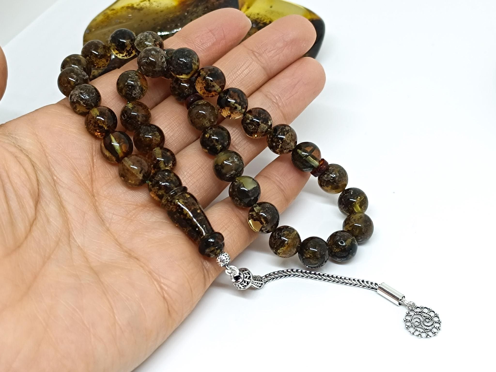 100% Genuine Baltic Amber rosary with plant fossils and 925 sterling silver tassel. All amber stones are genuine, authentic, natural Baltic amber stones. Not artificial, plastic or synthetic. Item will come with authenticity certificate.
