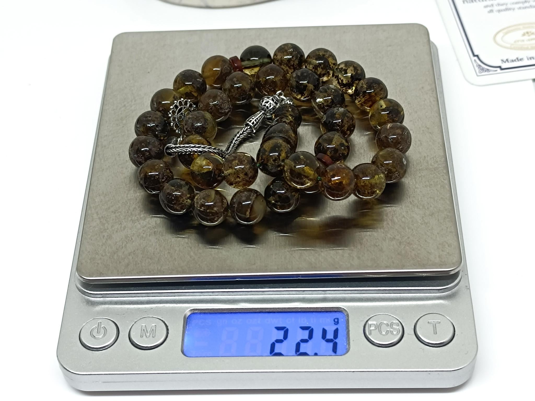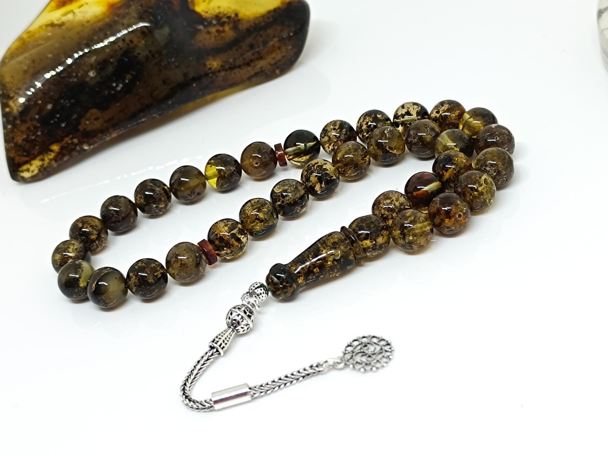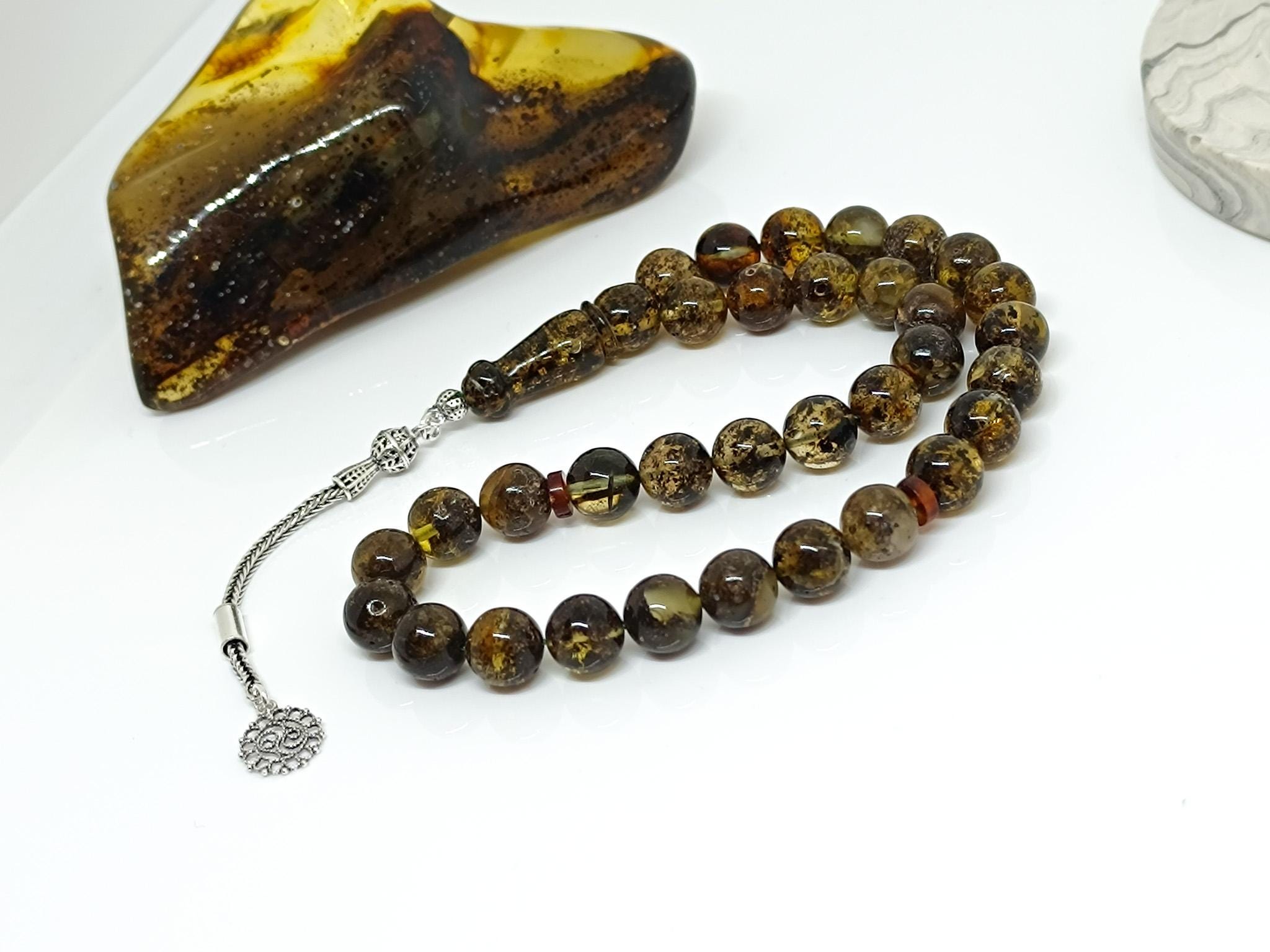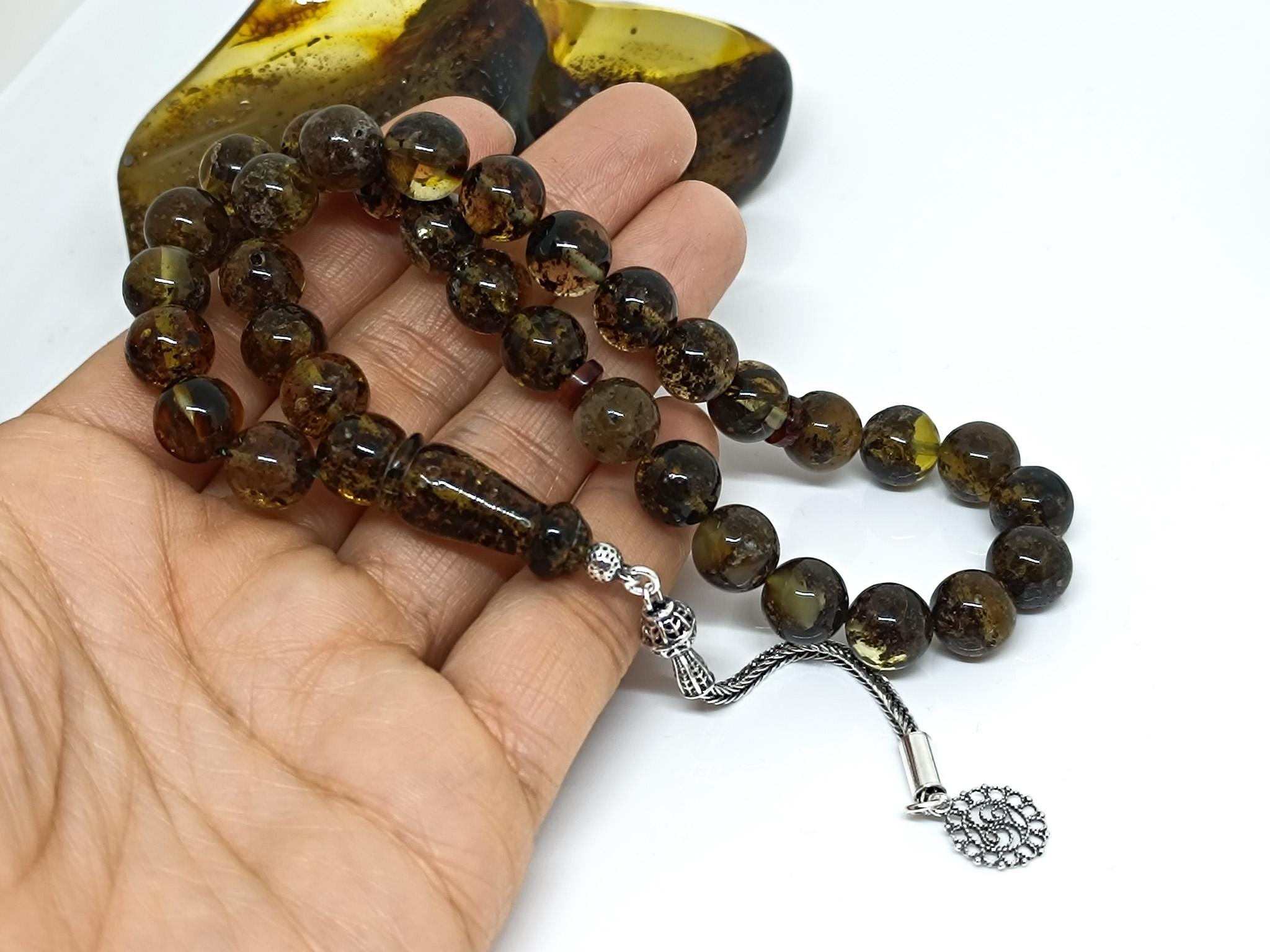 100% Genuine Baltic Amber rosary with plant fossils and 925 sterling silver tassel. All amber stones are genuine, authentic, natural Baltic amber stones. Not artificial, plastic or synthetic. Item will come with authenticity certificate.