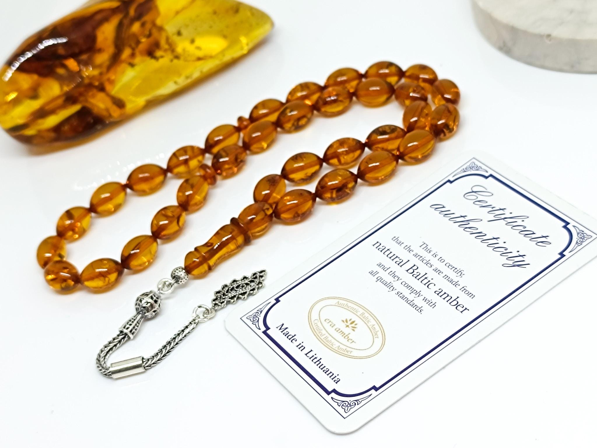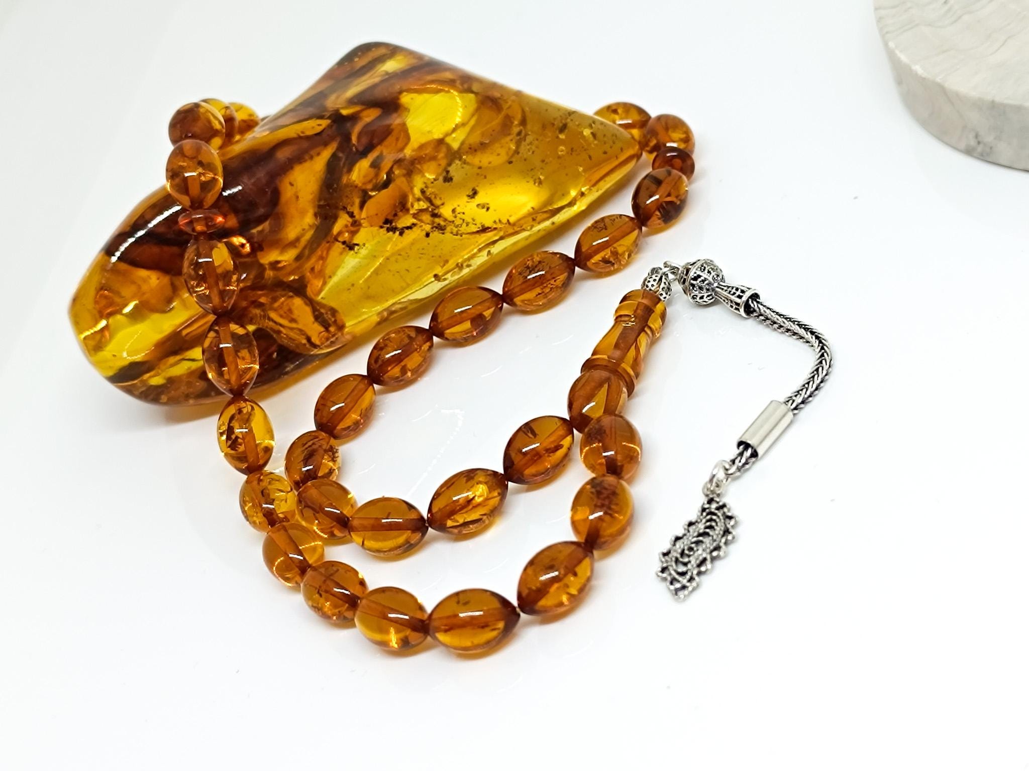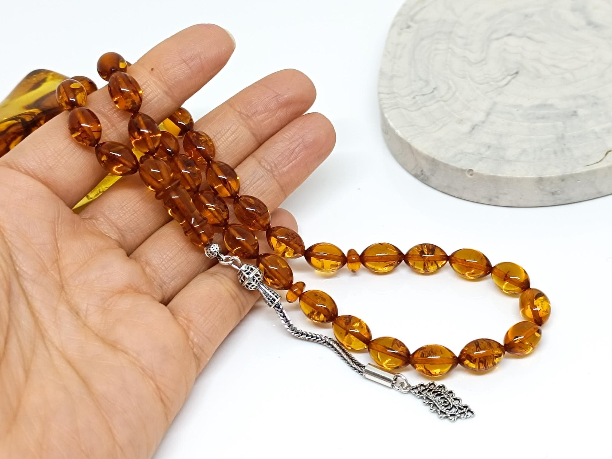 100% Natural Baltic Amber Islamic rosary with 33 Beads.This rosary made of real natural Baltic amber. And tassel is 925 sterling silver. All amber stones we use are genuine, authentic, natural Baltic amber stones.