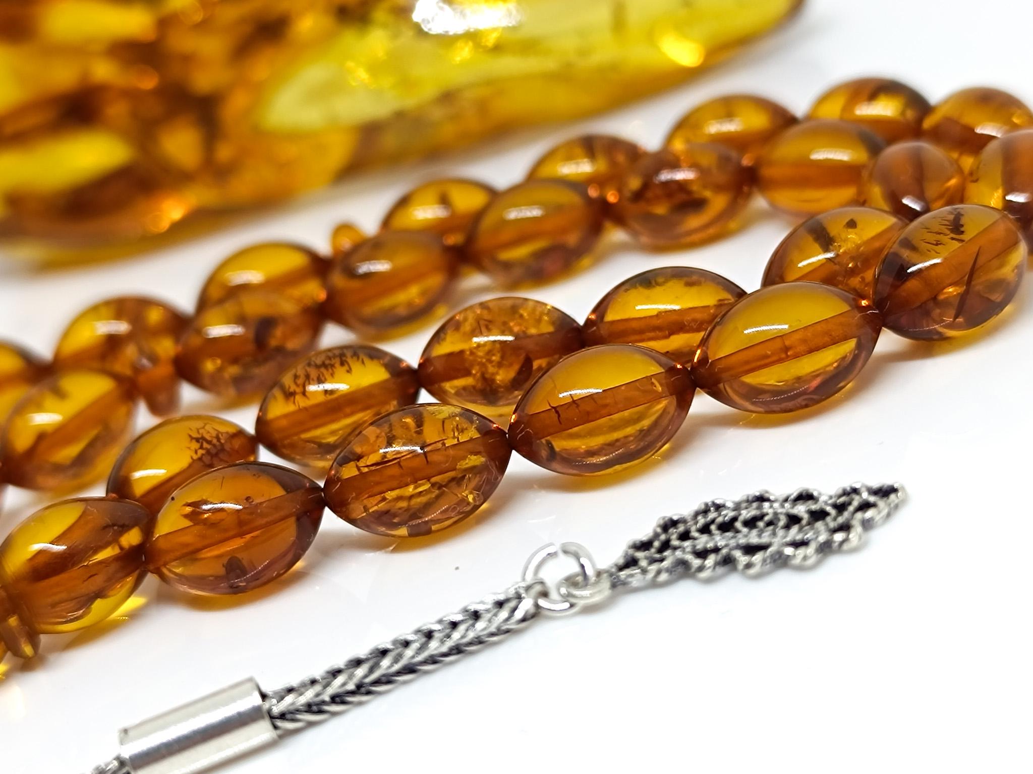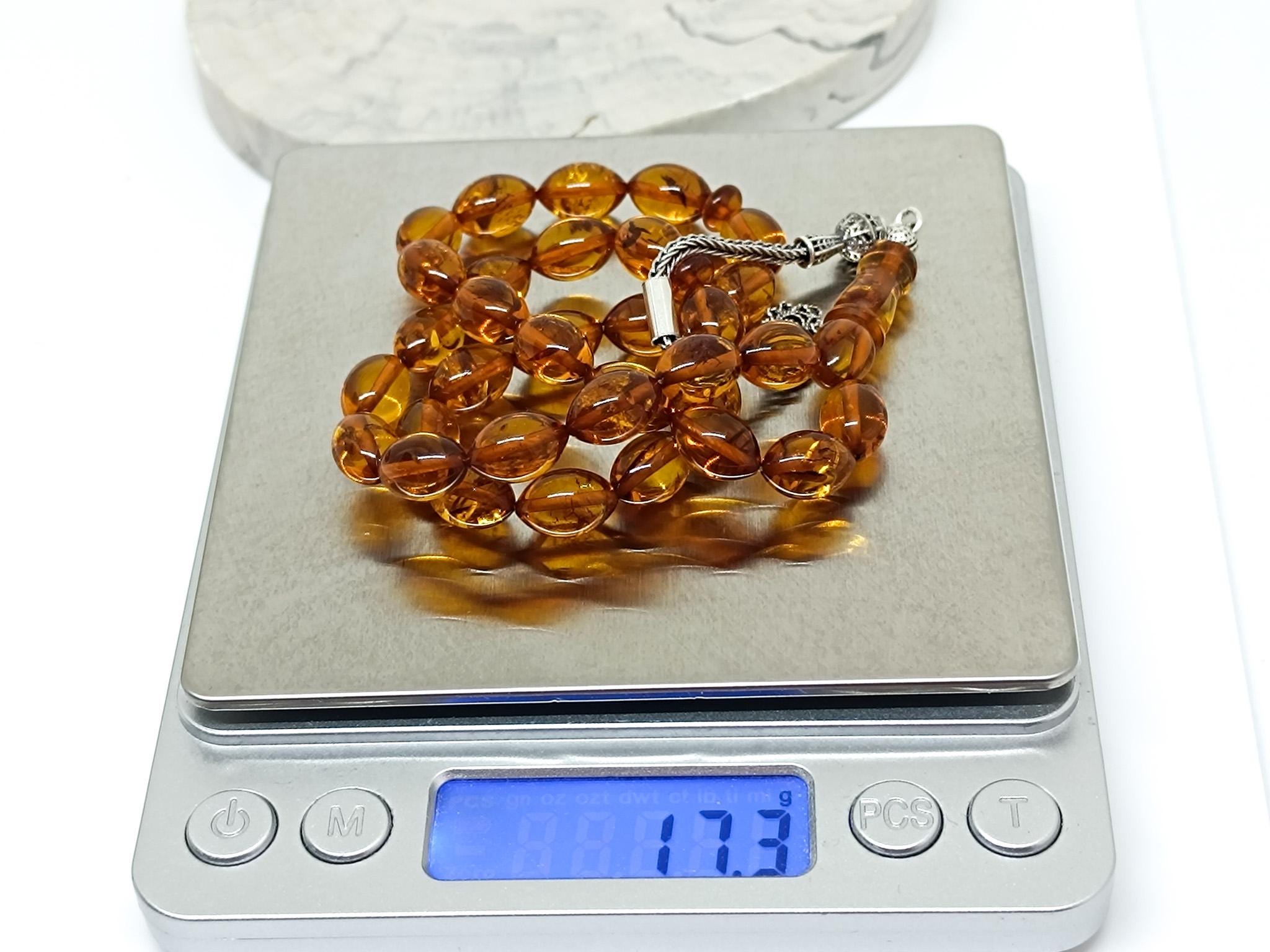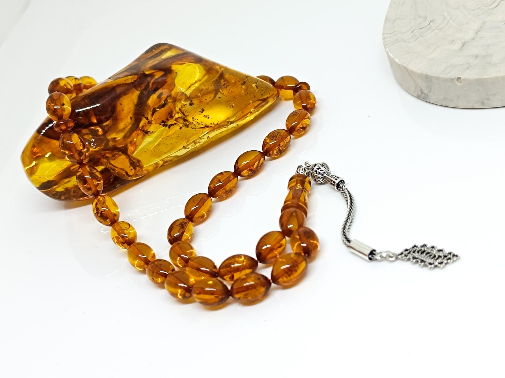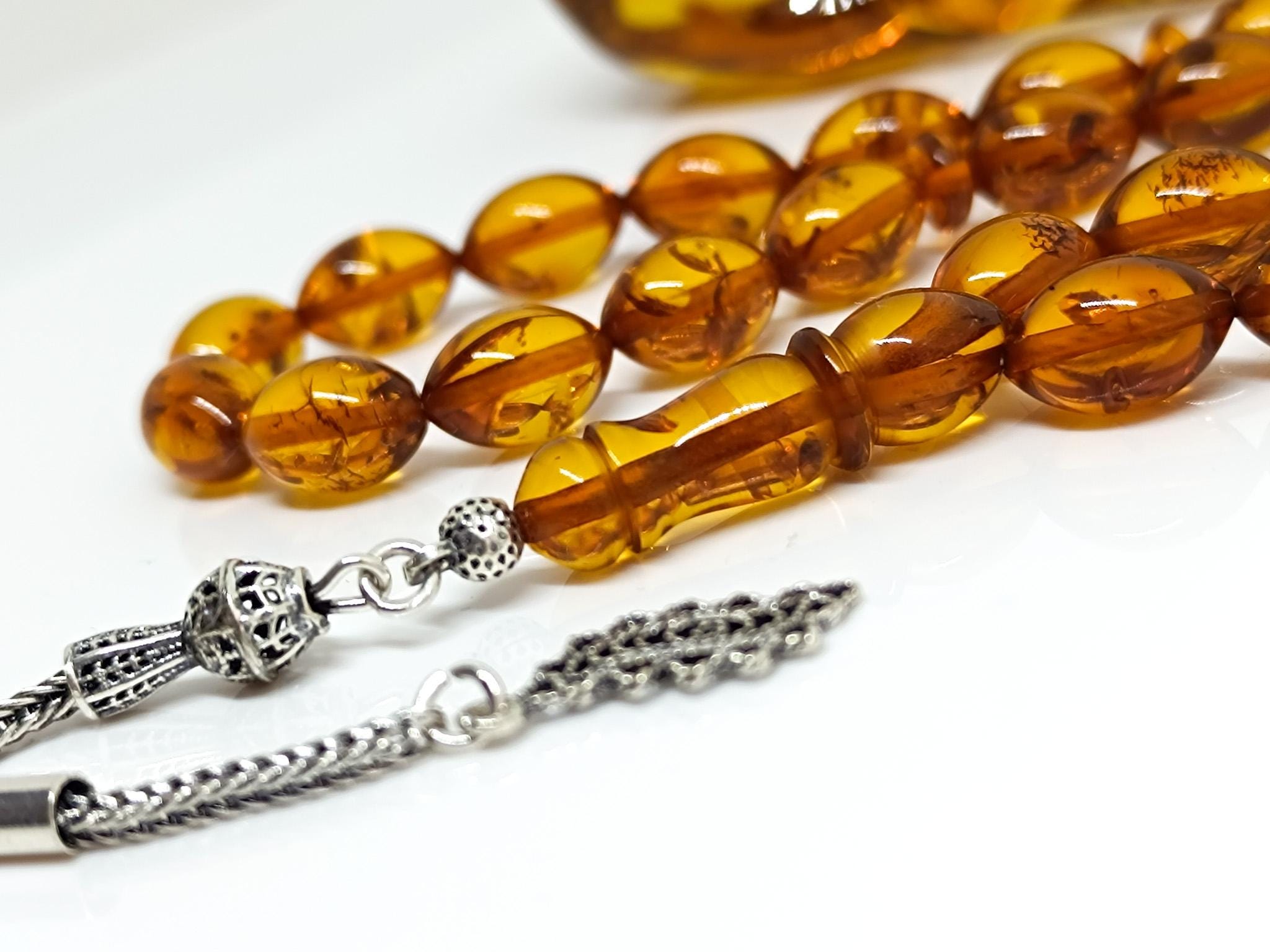 100% Natural Baltic Amber Islamic rosary with 33 Beads.This rosary made of real natural Baltic amber. And tassel is 925 sterling silver. All amber stones we use are genuine, authentic, natural Baltic amber stones.