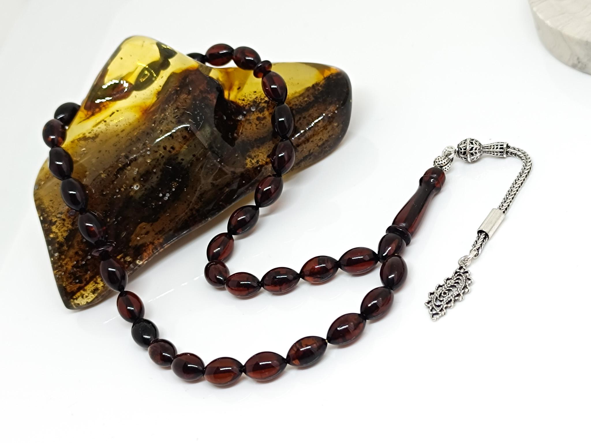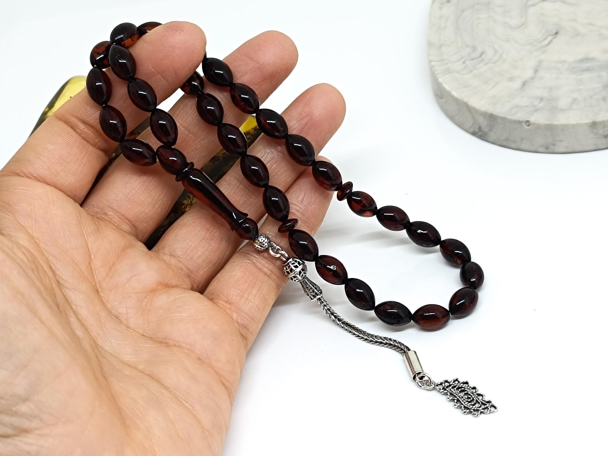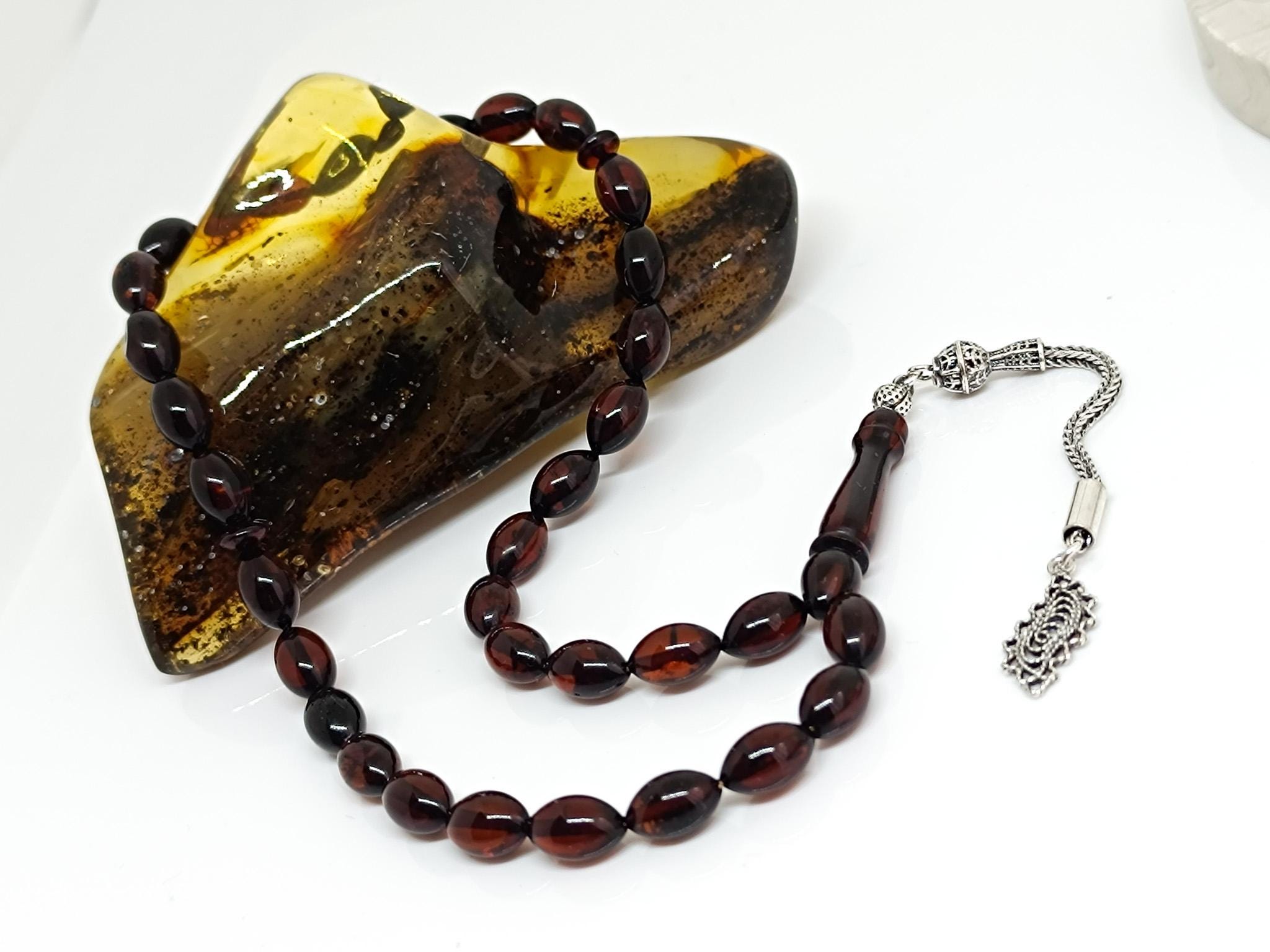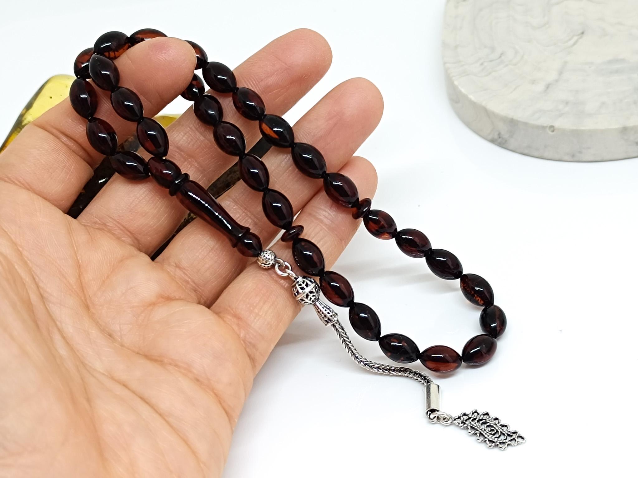 100% Natural Baltic Amber Islamic Prayer 33 Beads and 925 sterling silver tassel. All amber stones are genuine, authentic, natural Baltic amber stones.