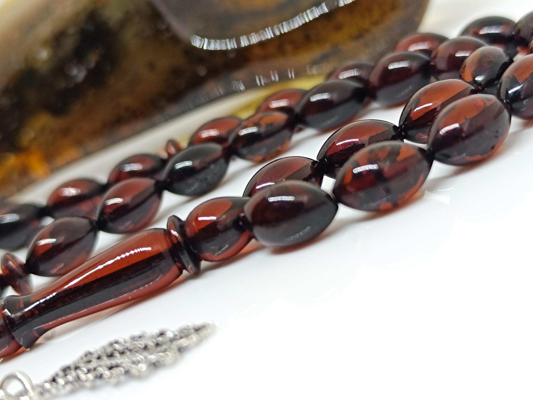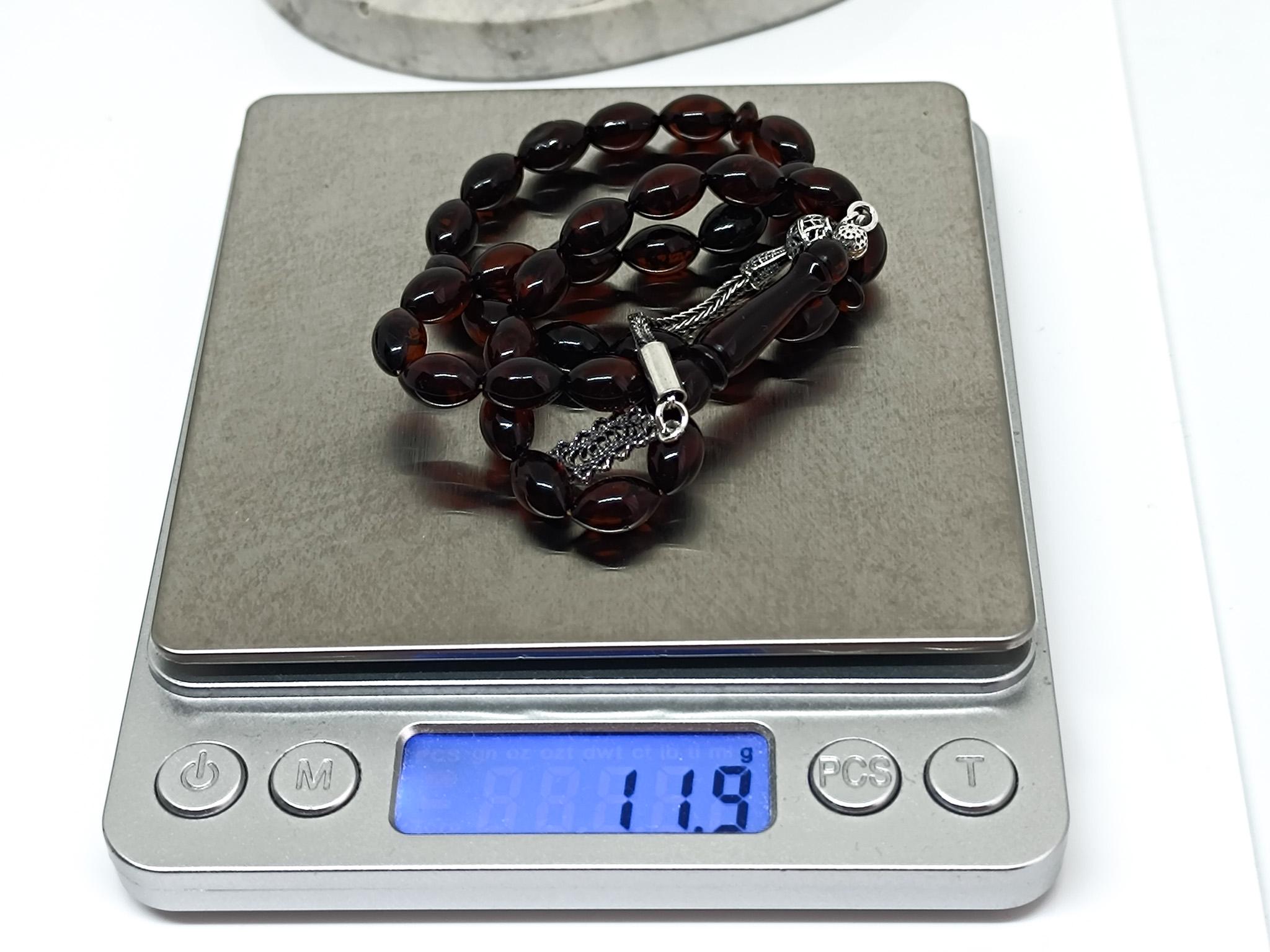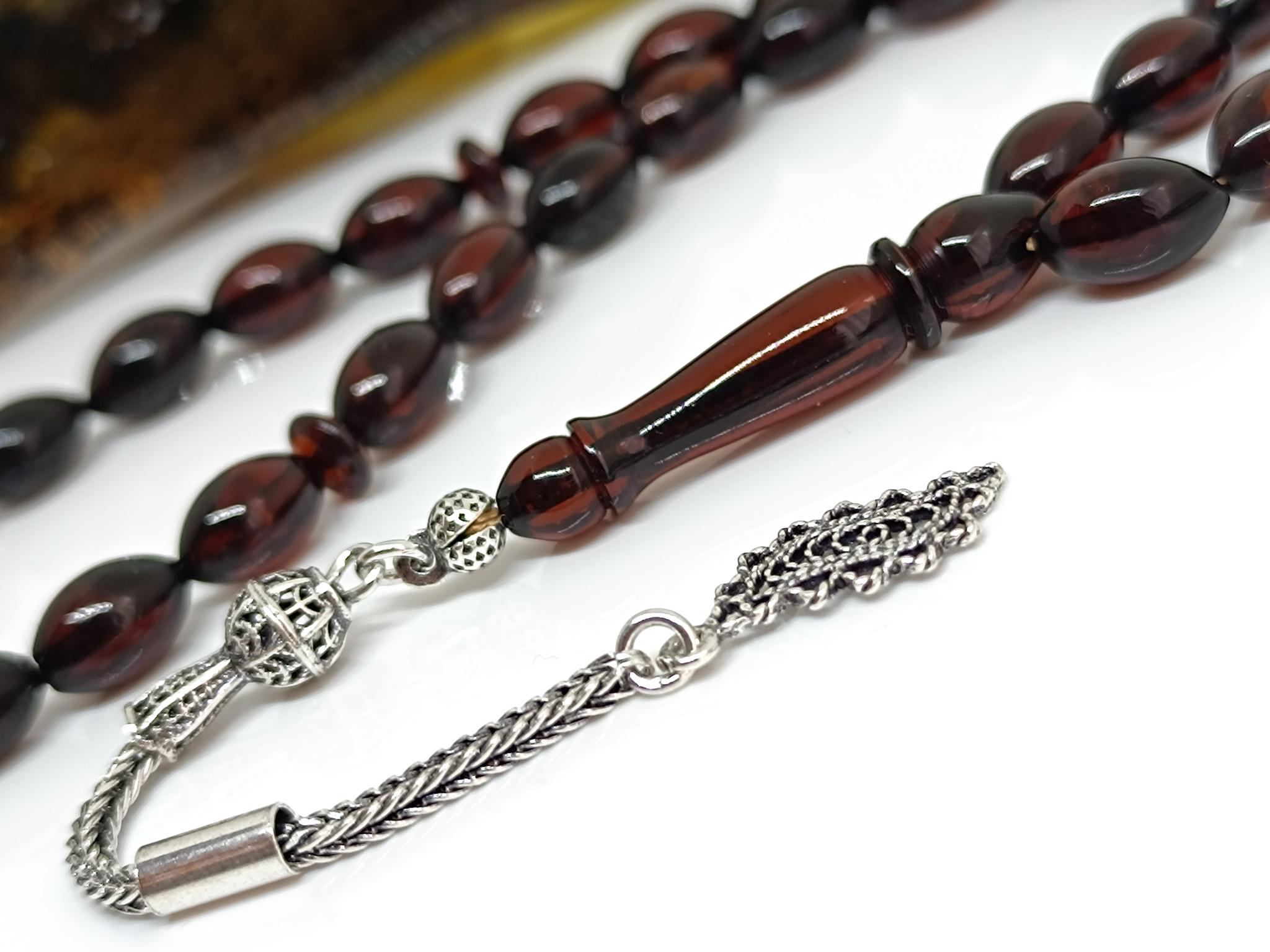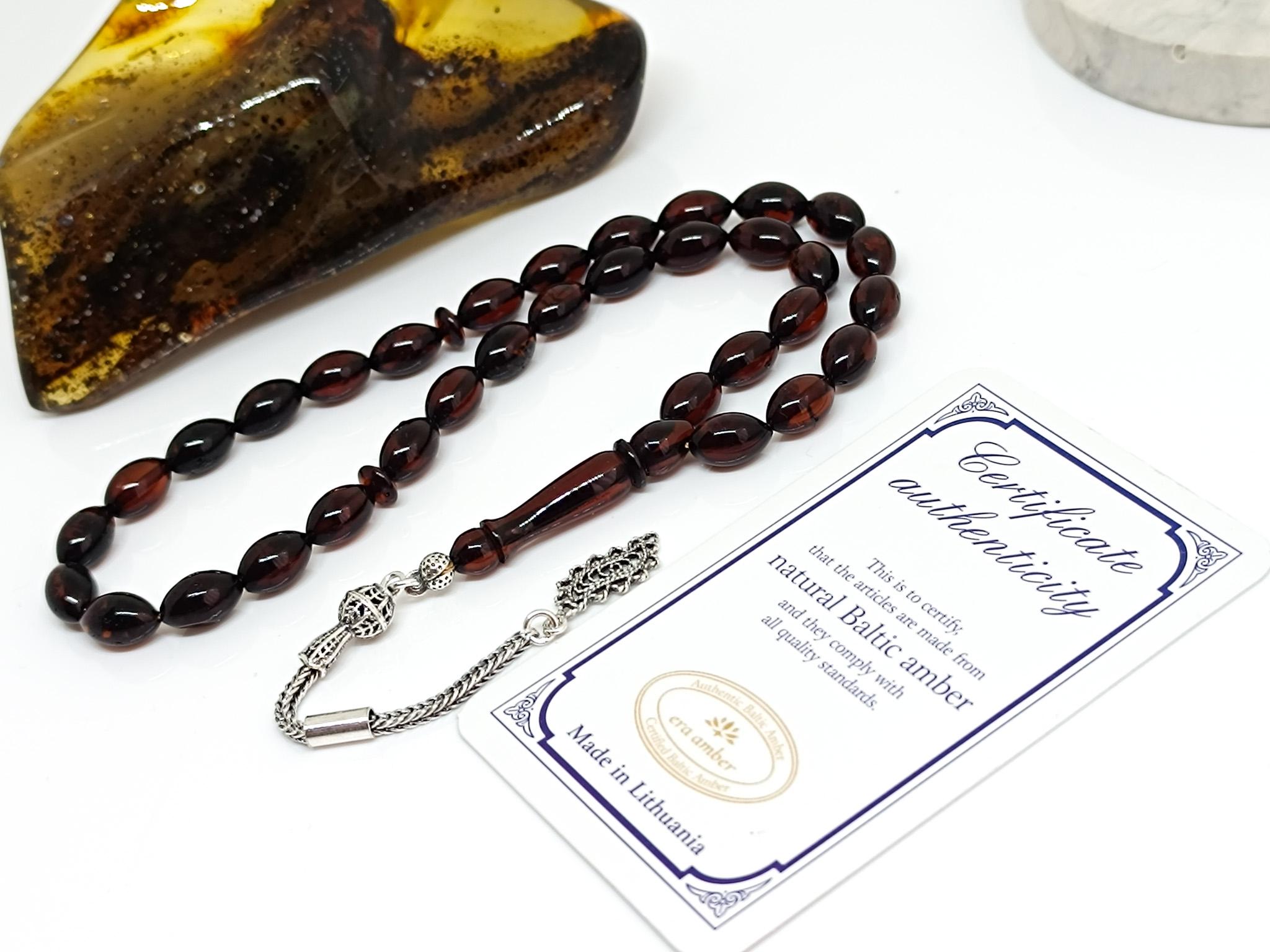 100% Natural Baltic Amber Islamic Prayer 33 Beads and 925 sterling silver tassel. All amber stones are genuine, authentic, natural Baltic amber stones.