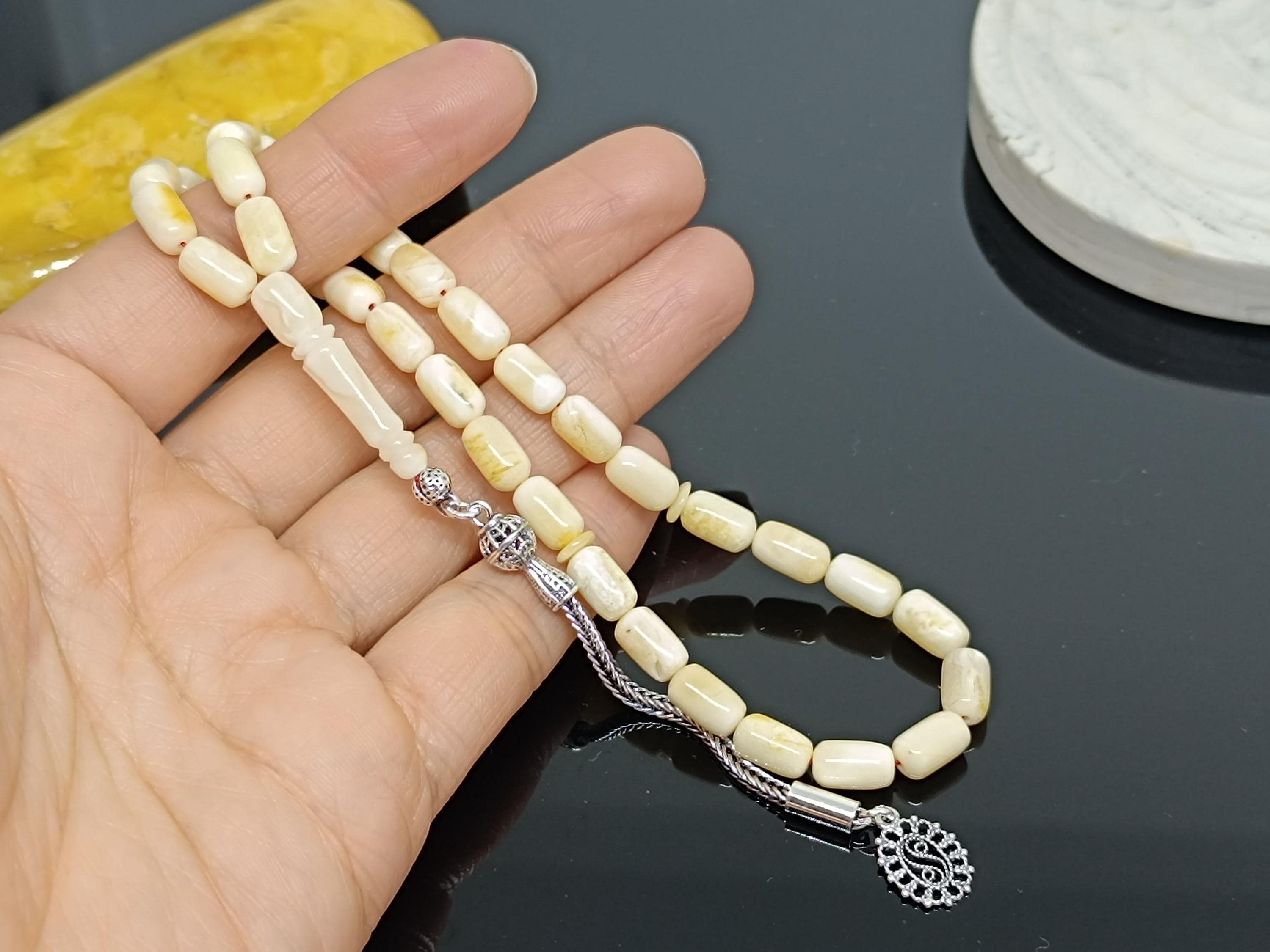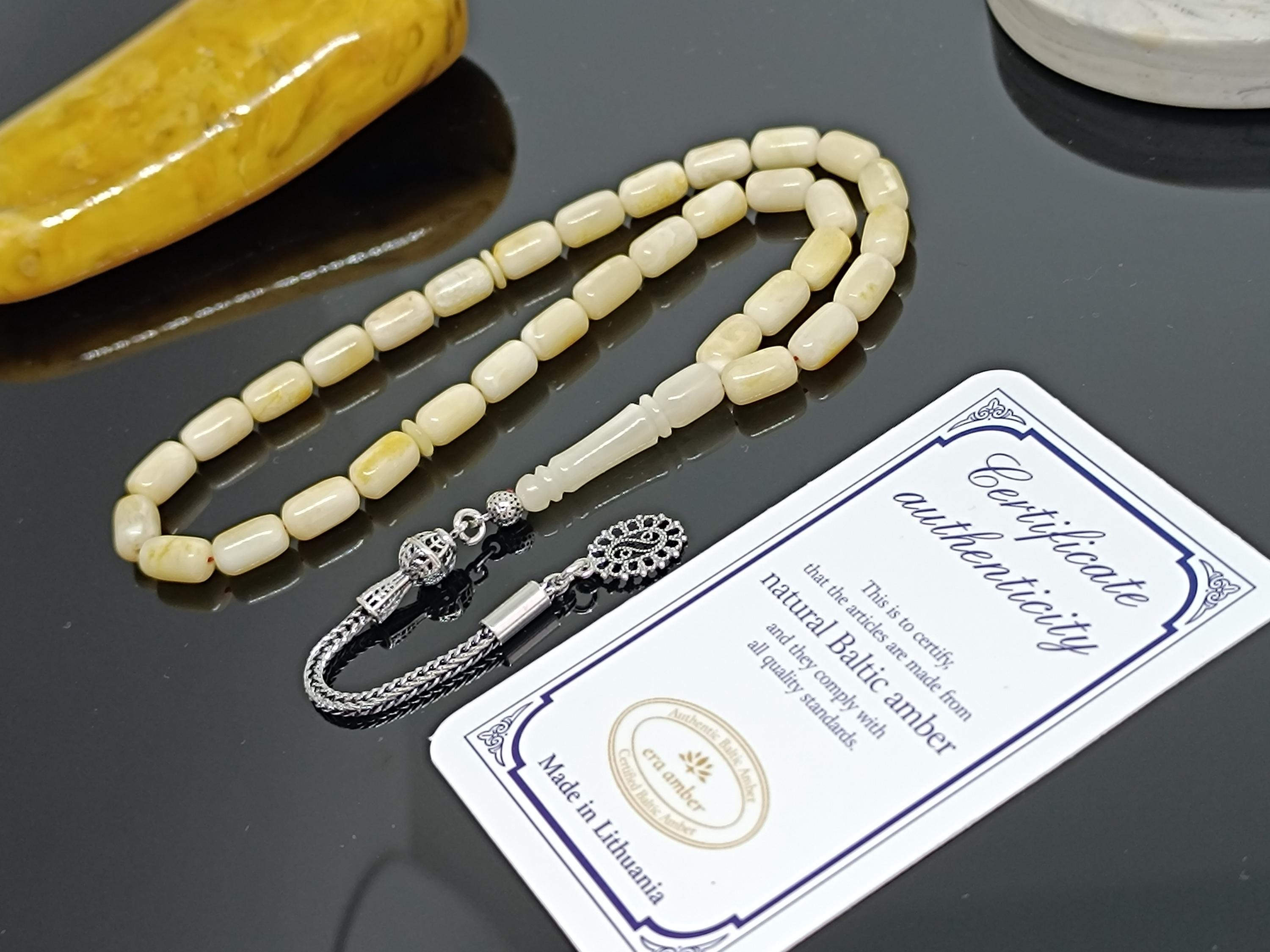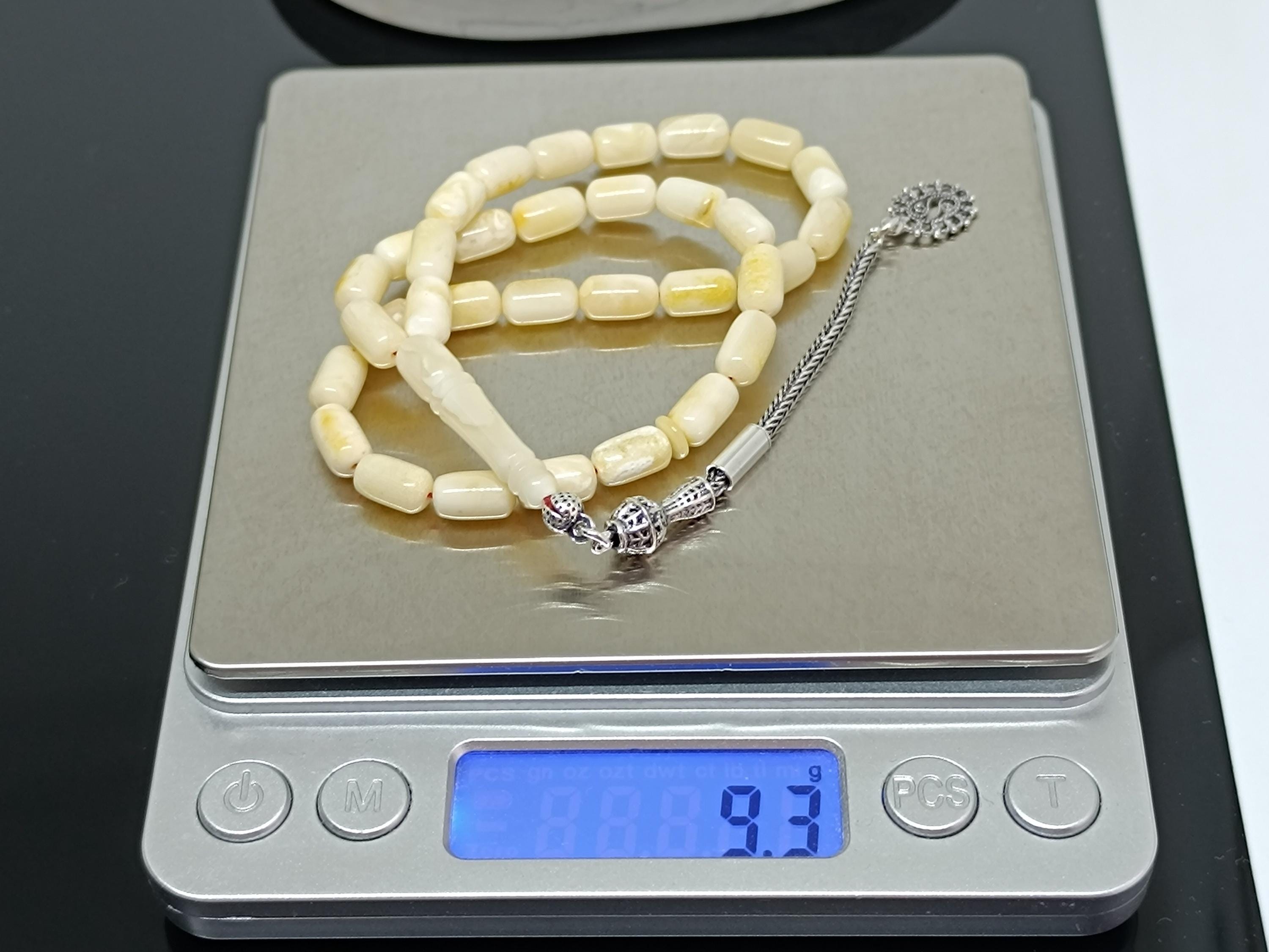 Natural Baltic Amber Rosary Beads, 925 Silver Tassel, Islamic Prayer Tesbih