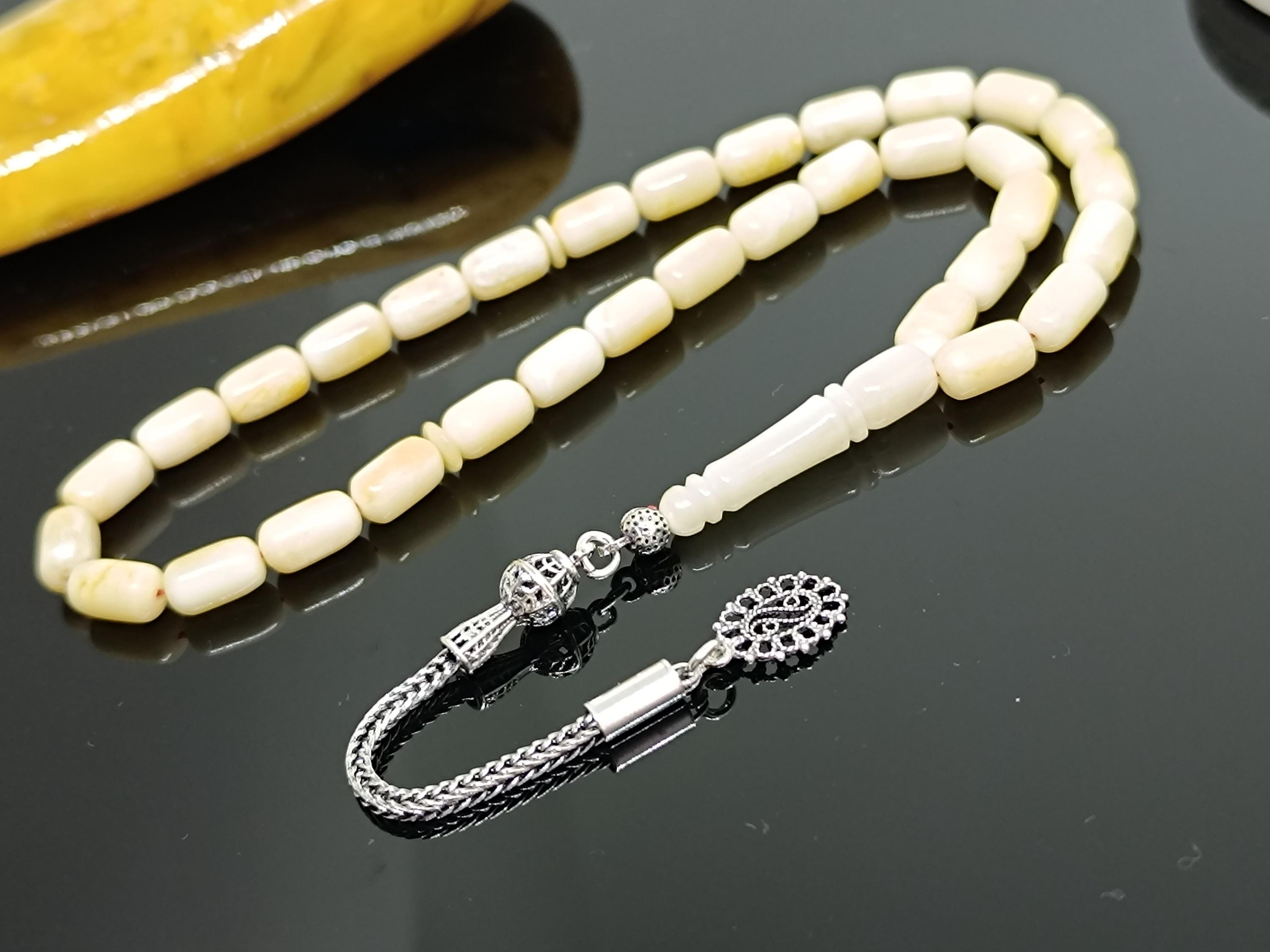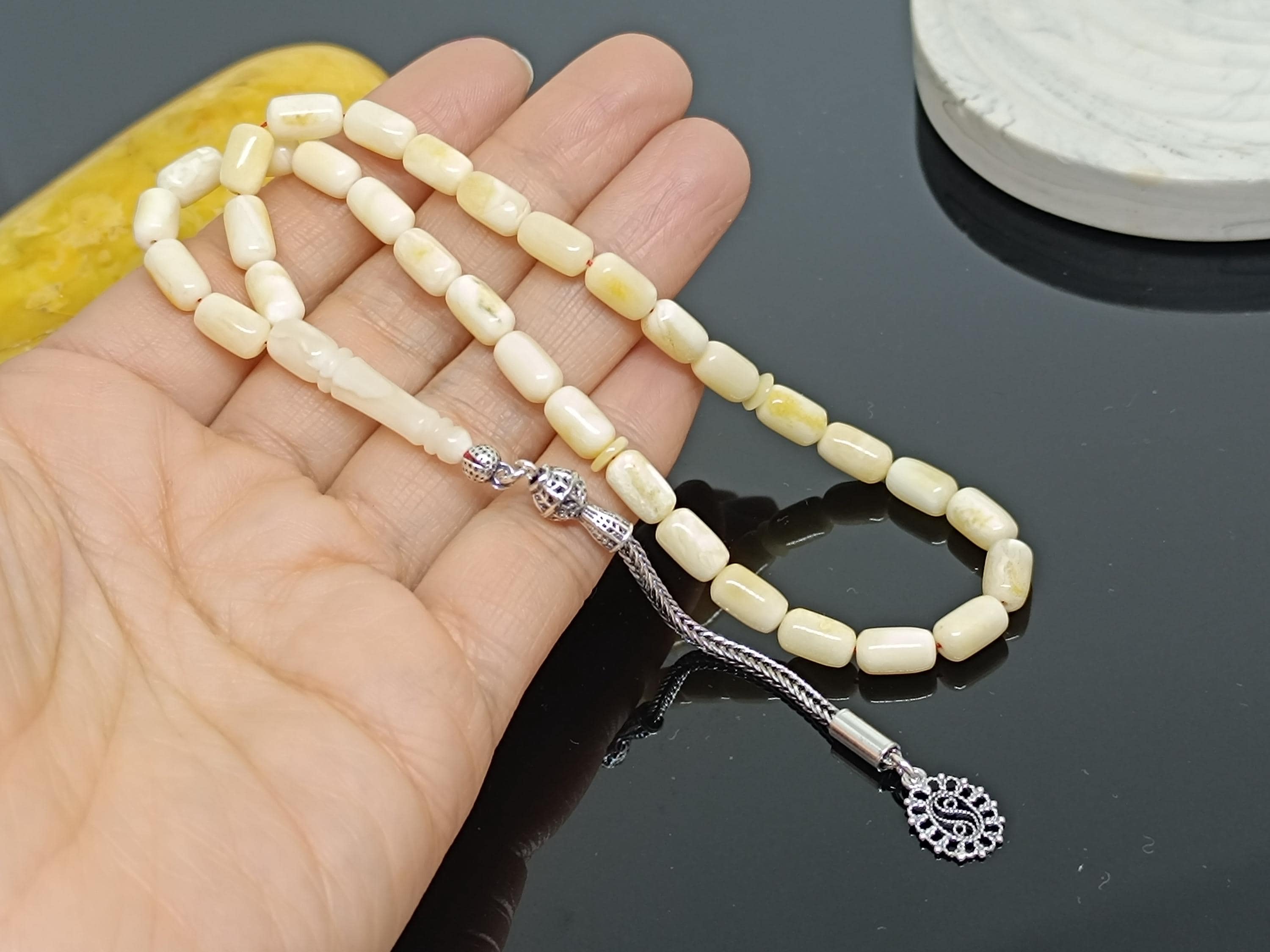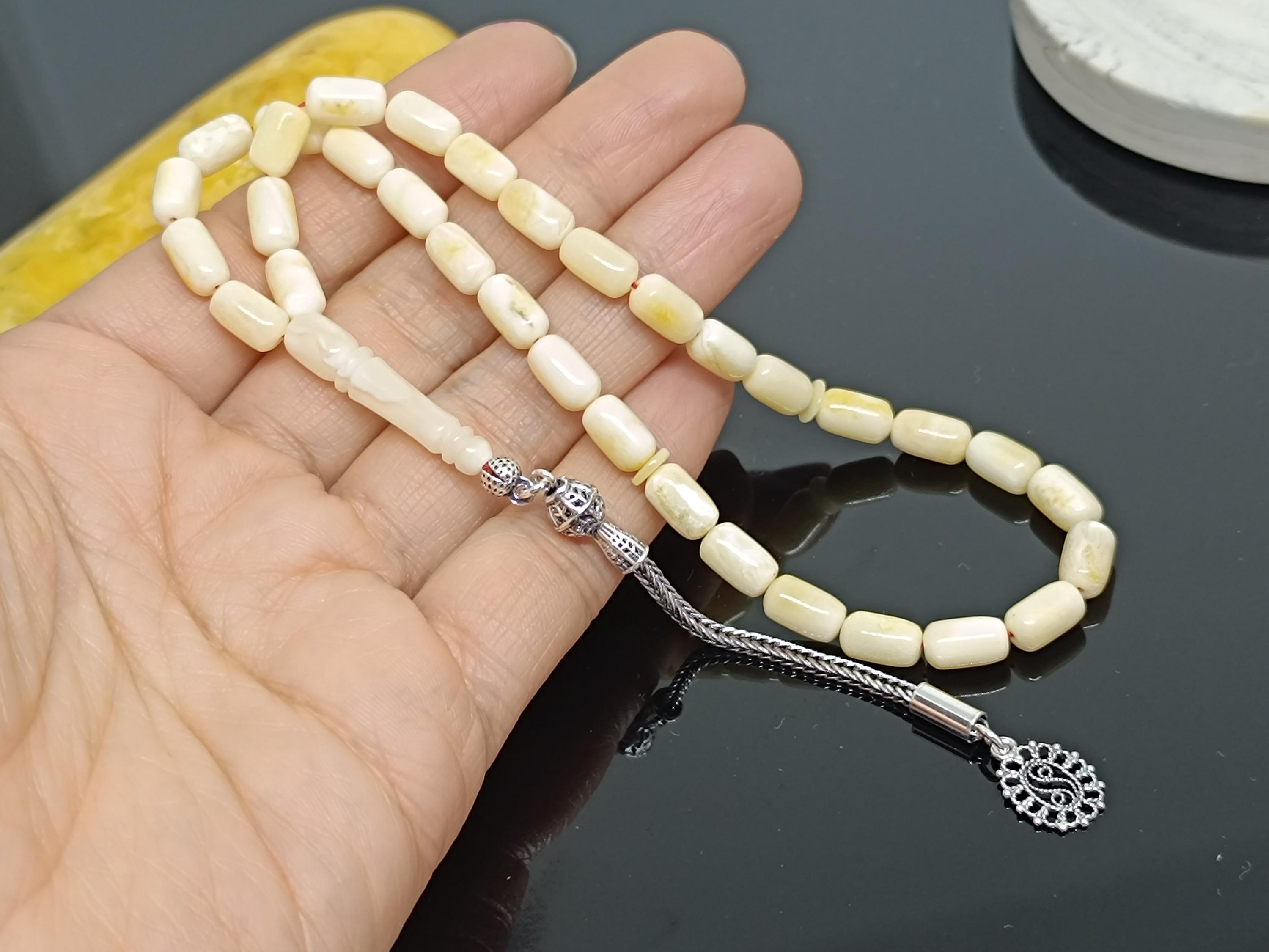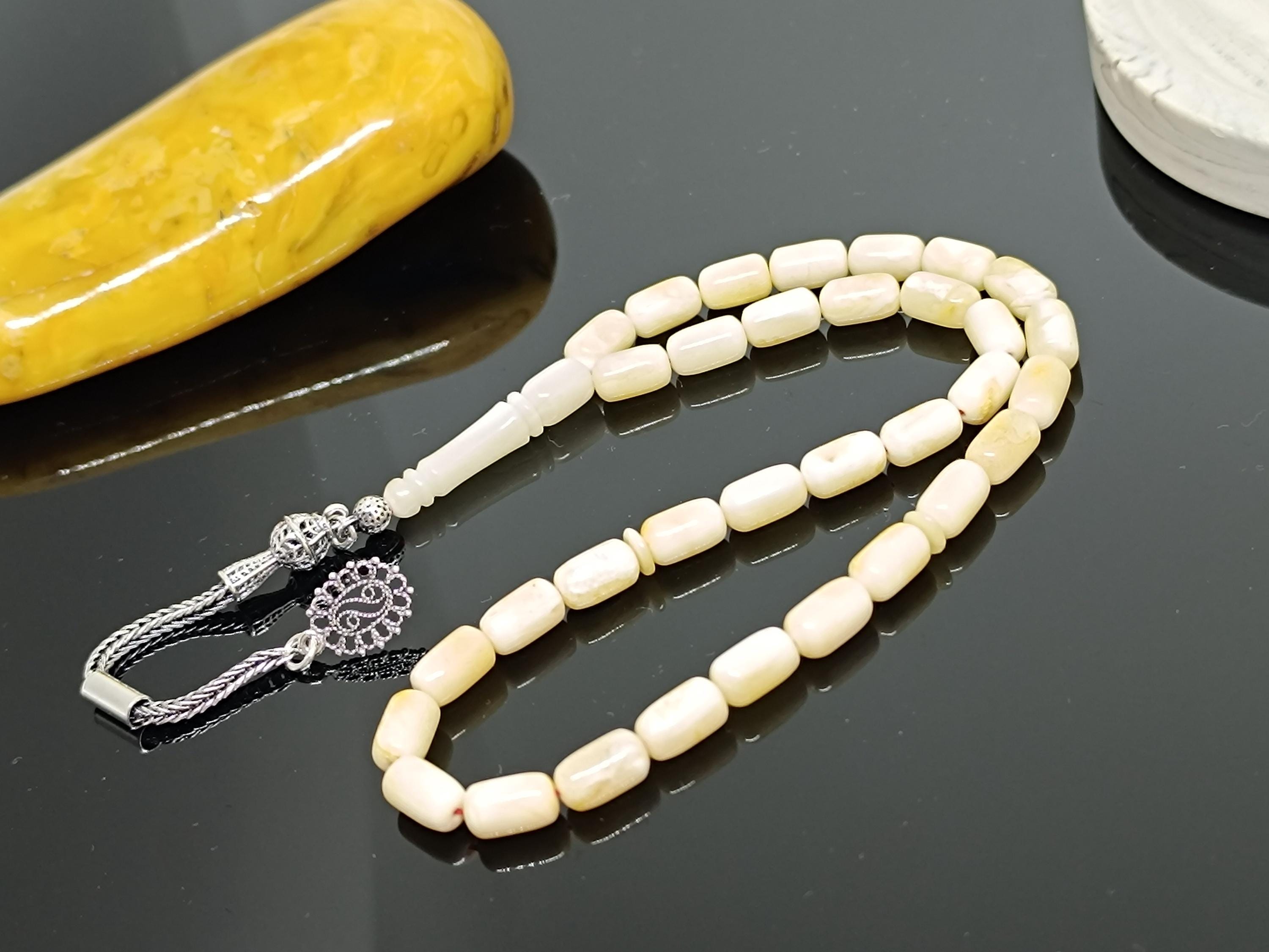 Natural Baltic Amber Rosary Beads, 925 Silver Tassel, Islamic Prayer Tesbih