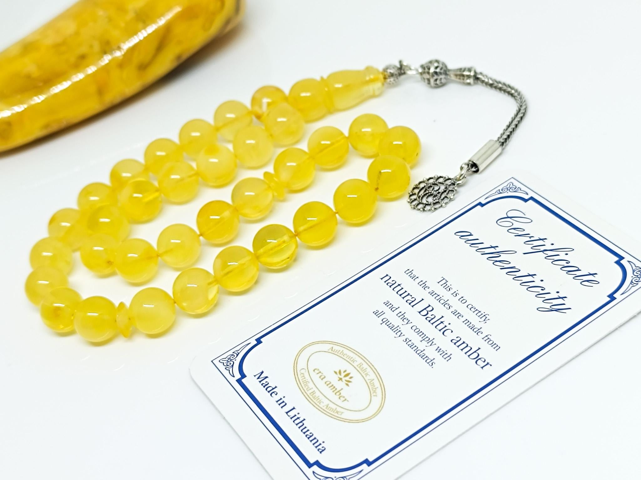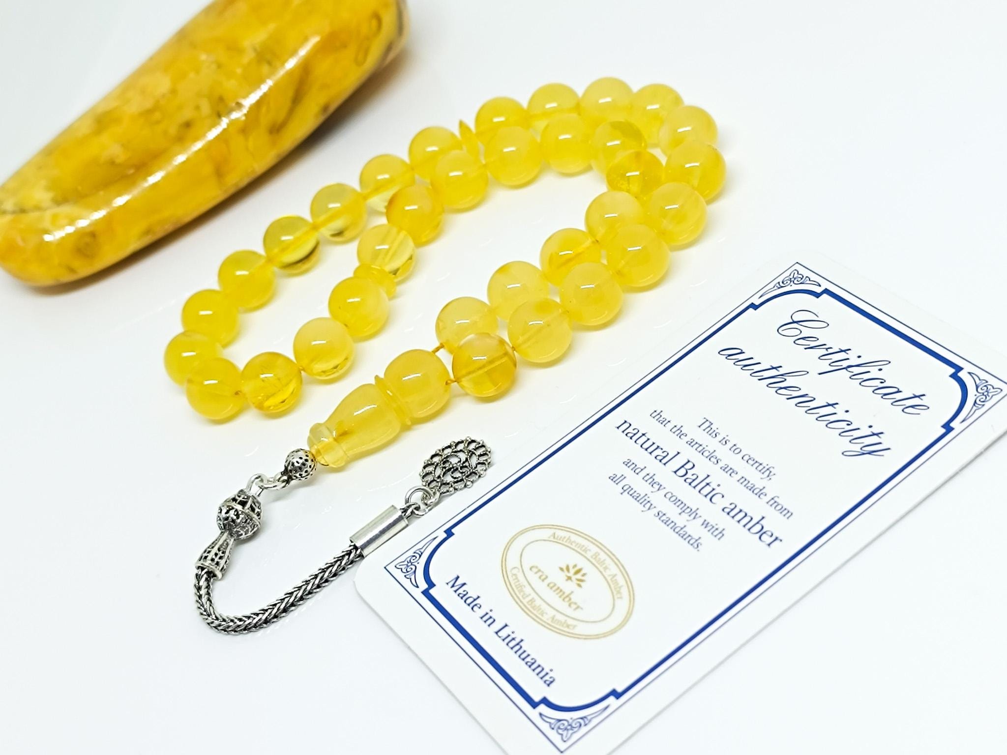 100% Natural Baltic Amber Islamic Prayer 33 Beads & 925 Sterling Silver. All amber stones are genuine, authentic, natural Baltic amber stones.