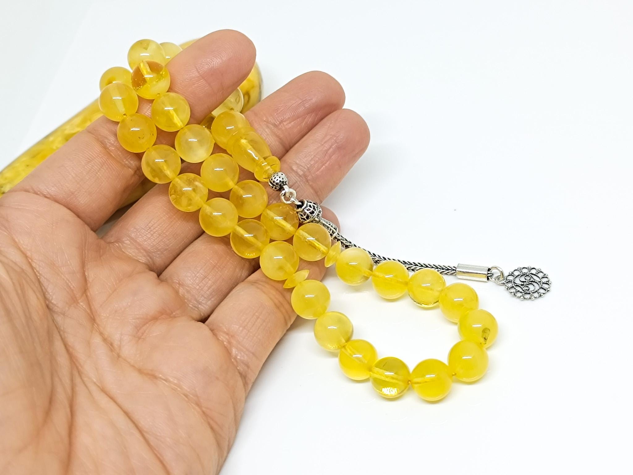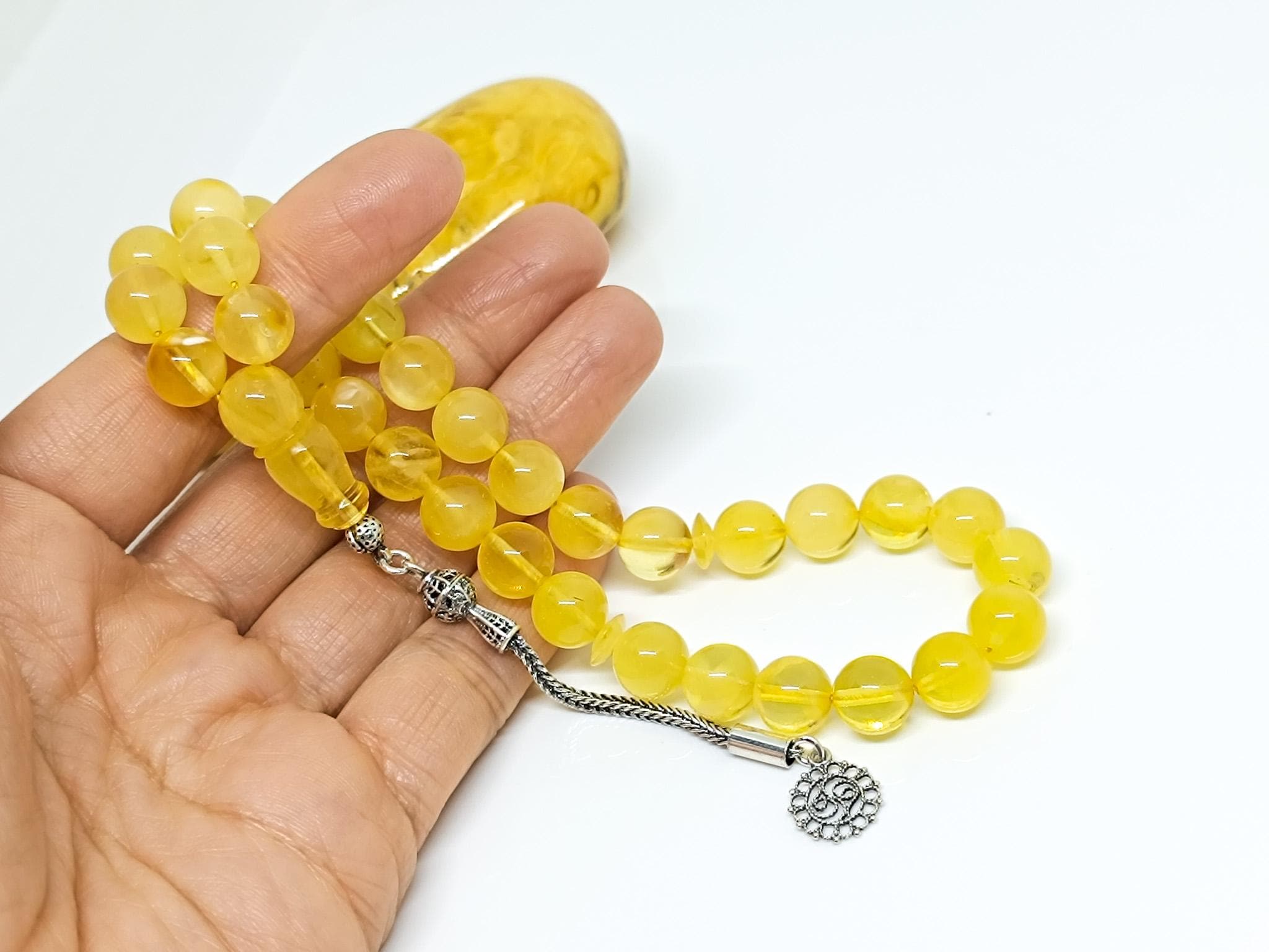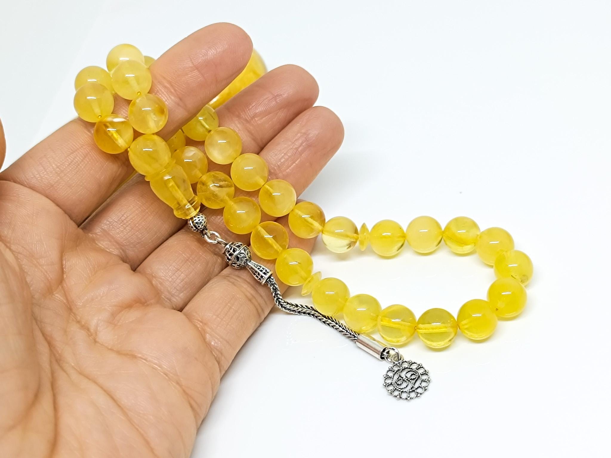 Natural Baltic Amber Rosary with 33 Beads & 925 Sterling Silver,Natural Baltic Amber Islamic Rosary, Amber Tesbih, Kahraman, Kehribar, 10mm