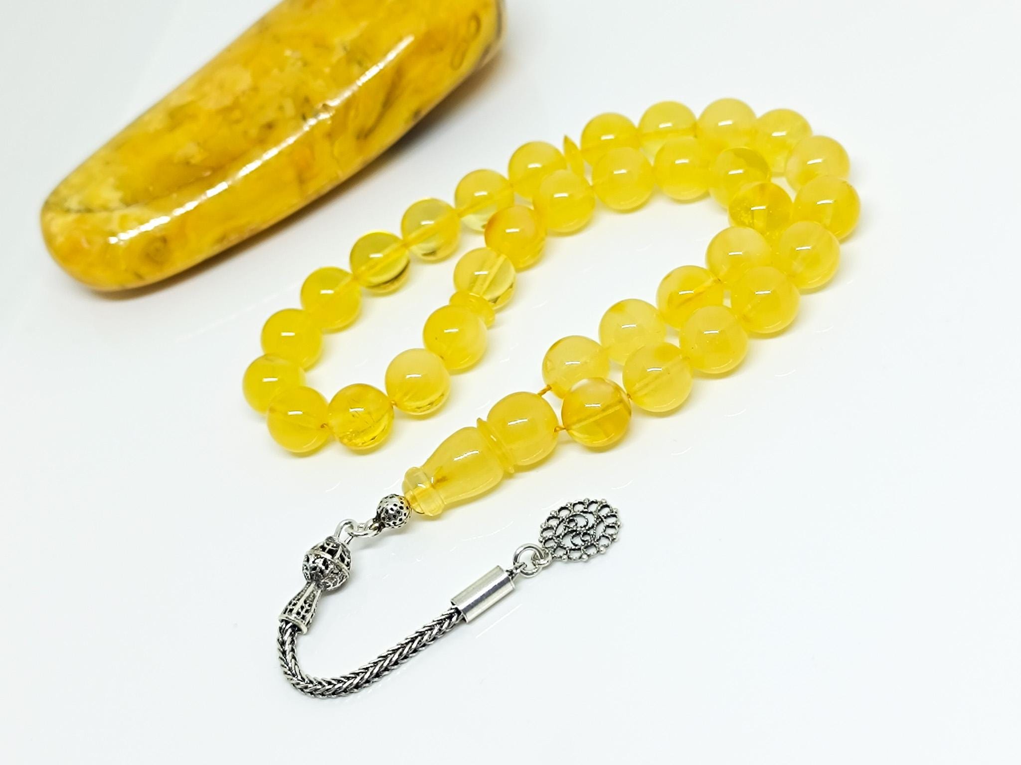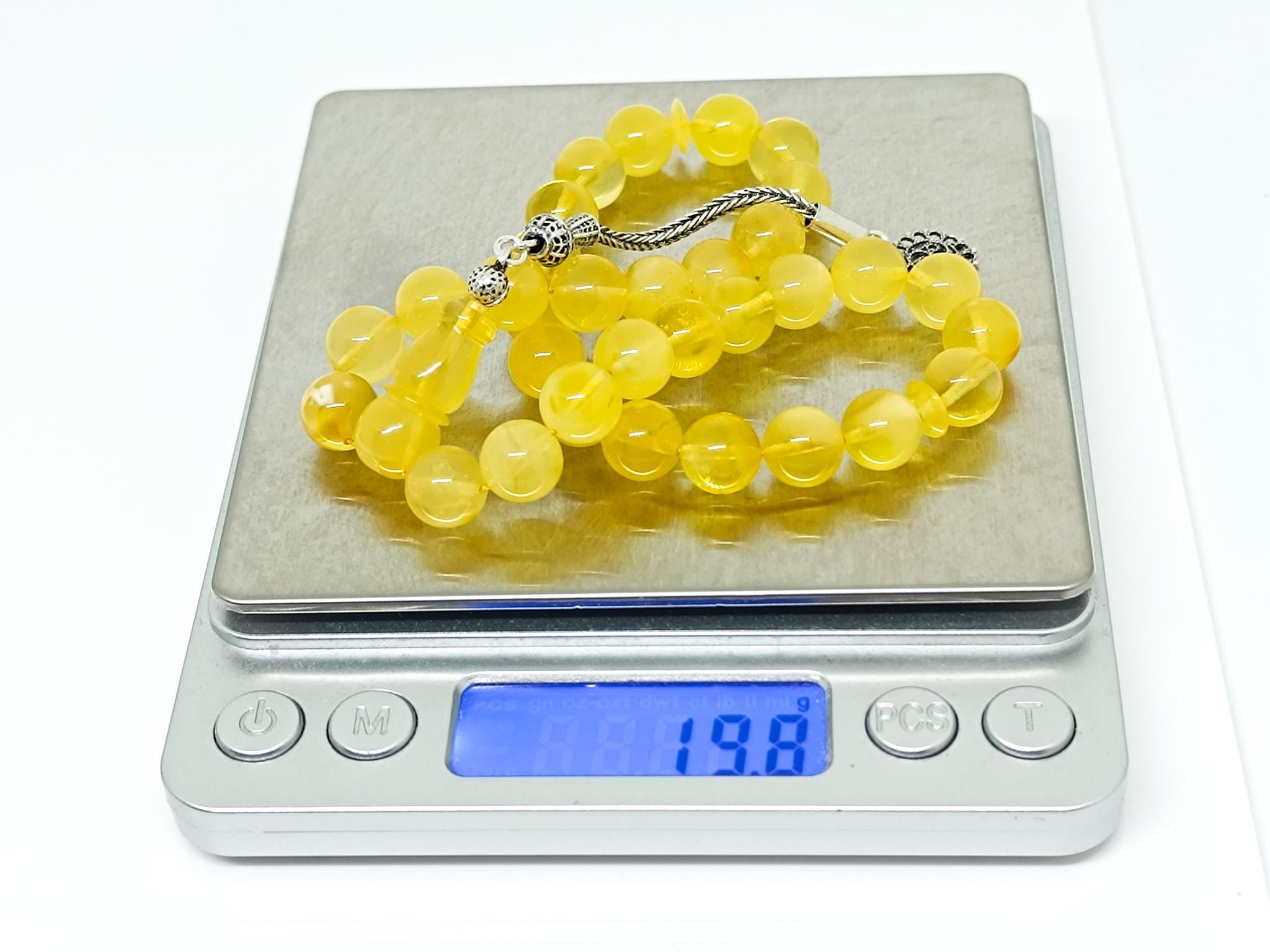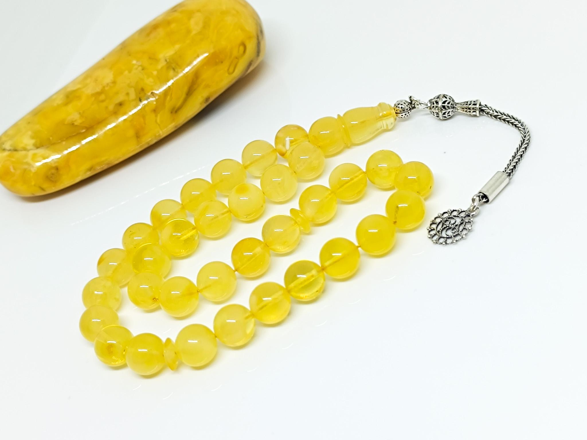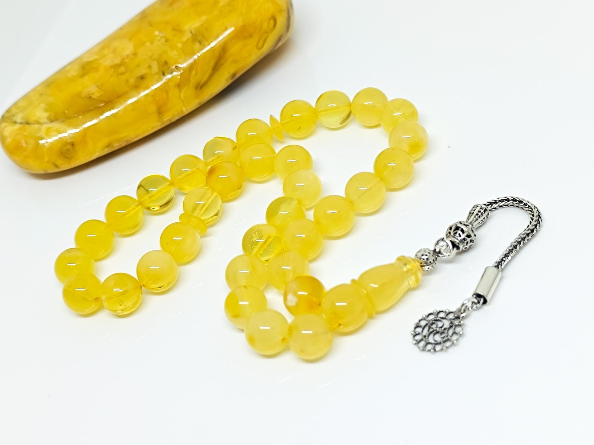 Natural Baltic Amber Rosary with 33 Beads & 925 Sterling Silver,Natural Baltic Amber Islamic Rosary, Amber Tesbih, Kahraman, Kehribar, 10mm