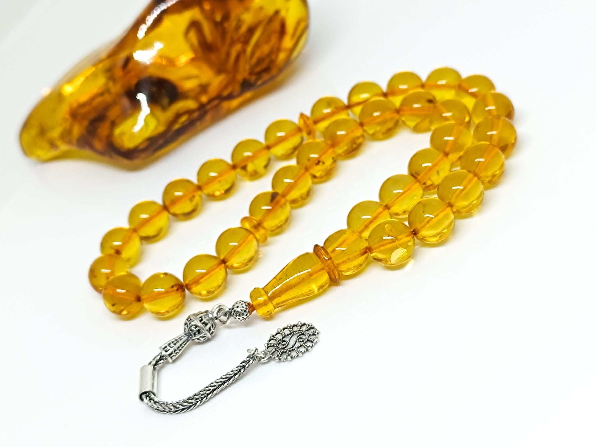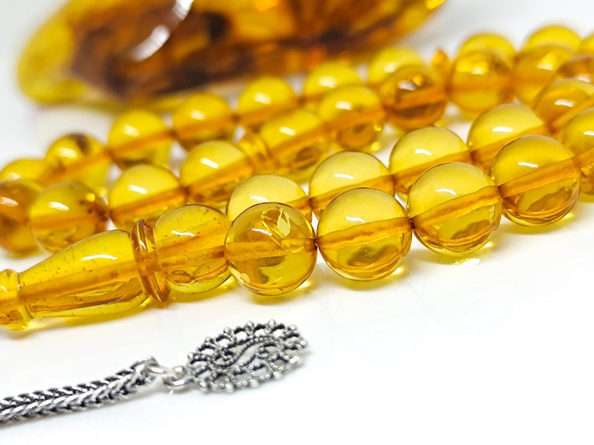 10mm Real Authentic Amber Rosary with 925 Silver Tassel, 33 Beads Natural Baltic Amber Prayer Beads, Kahraman, Kehribar,Amber Muslim Misbah