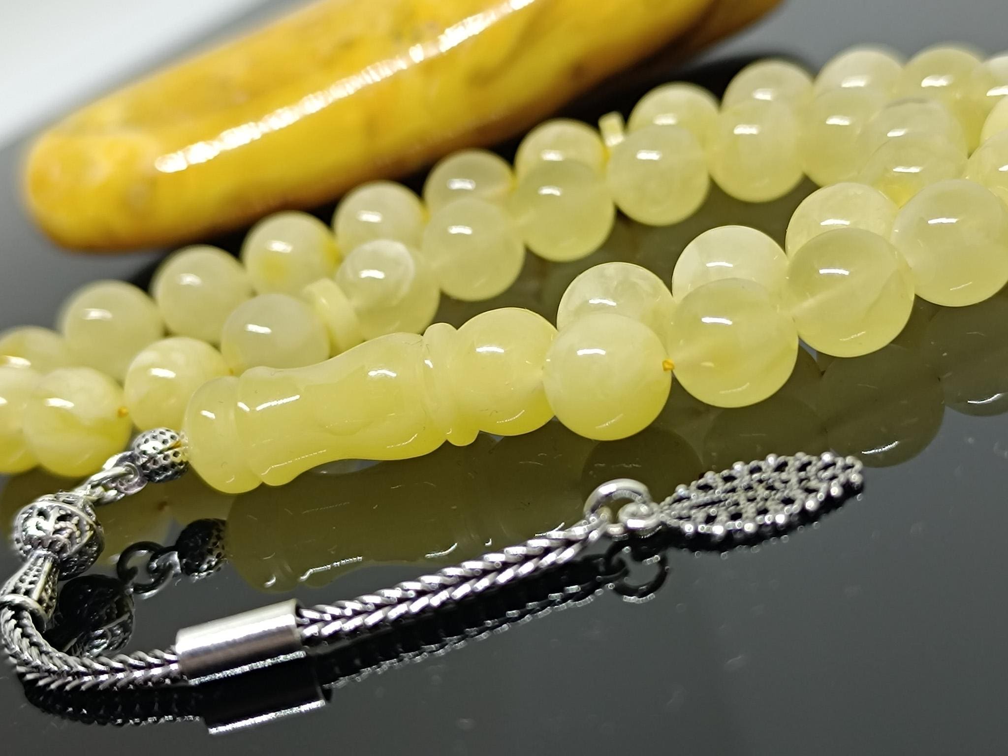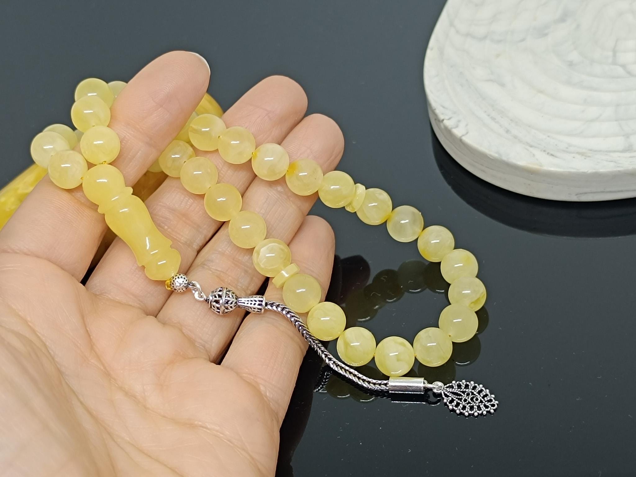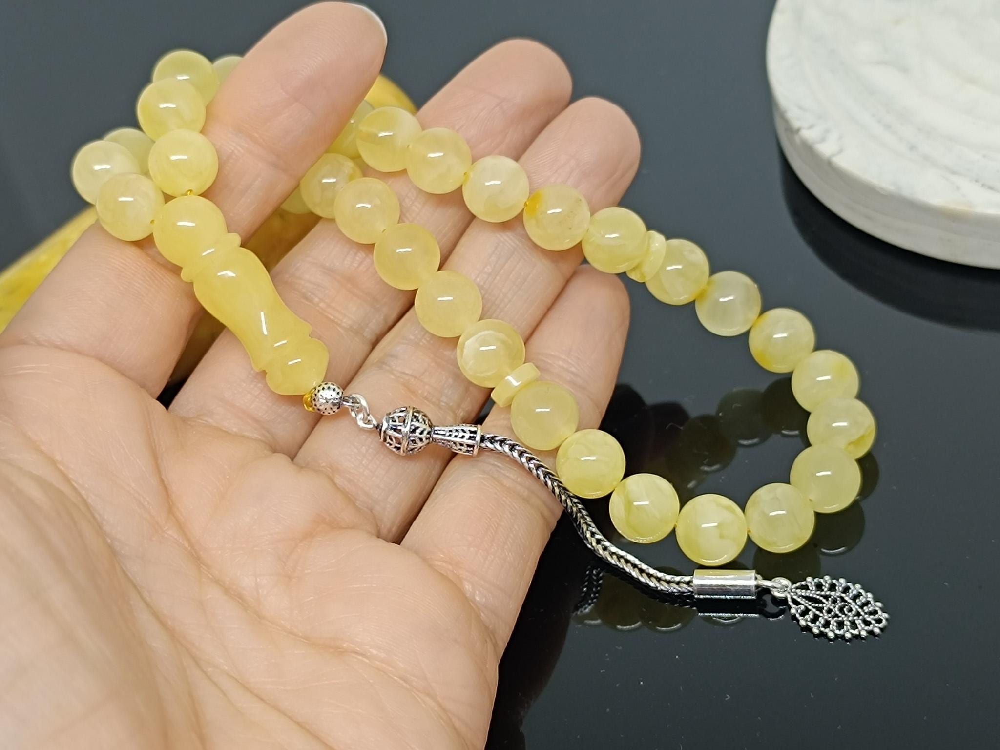 Natural Baltic Amber Rosary, 33 Beads, 925 Sterling Silver, Islamic Tesbih (9mm)