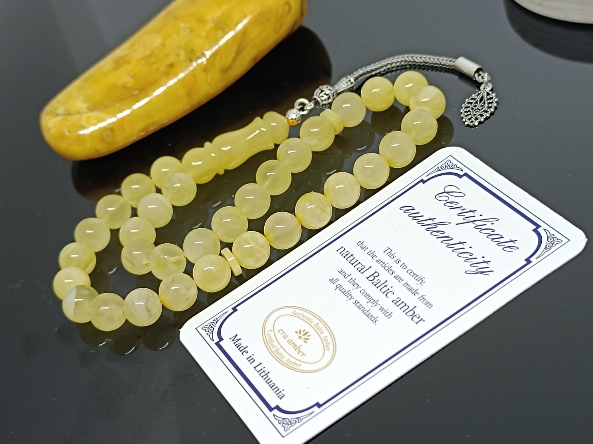 100% Natural Baltic Amber Islamic Prayer 33 Beads & 925 Sterling Silver. All amber stones are genuine, authentic, natural Baltic amber stones.