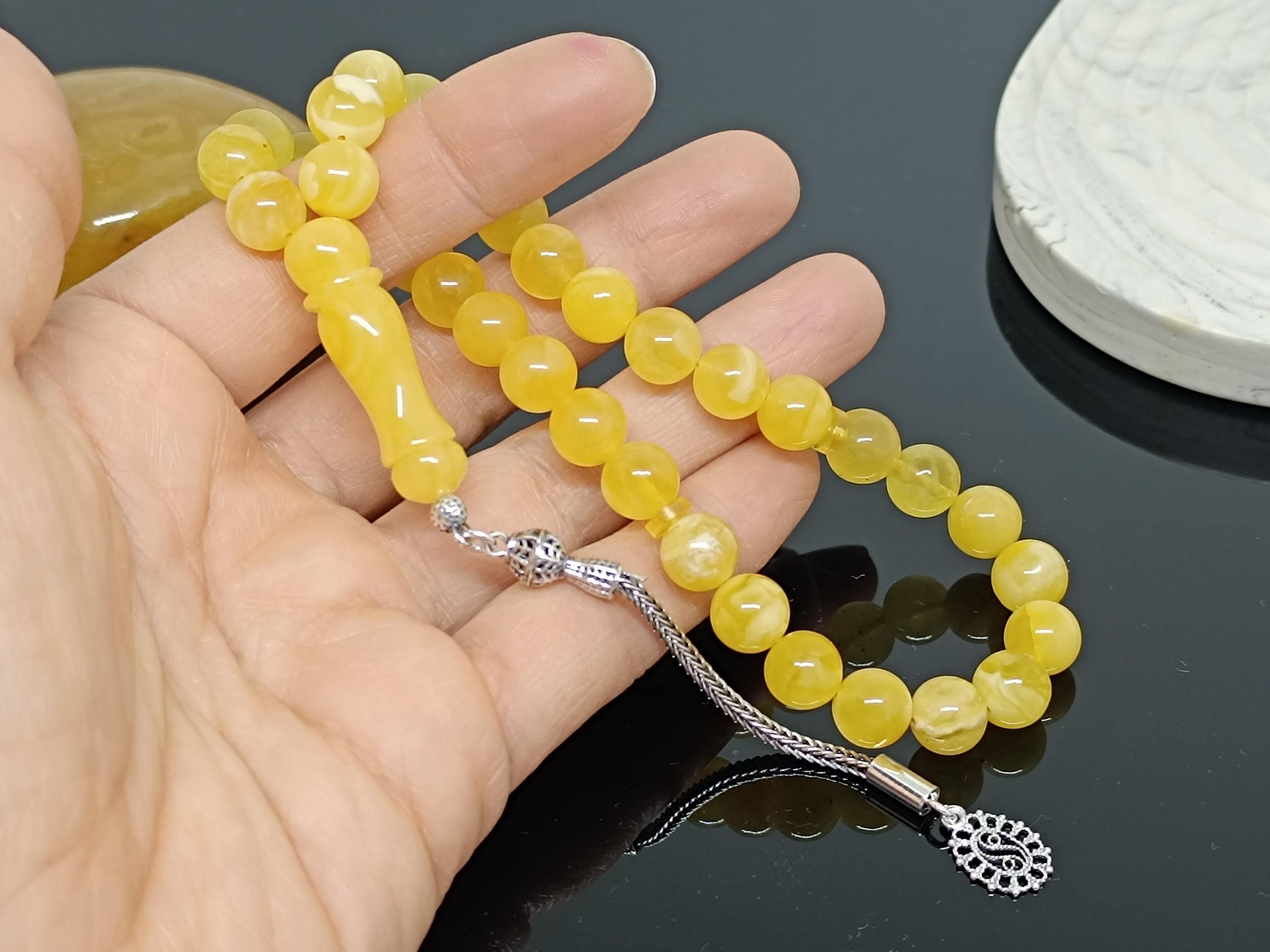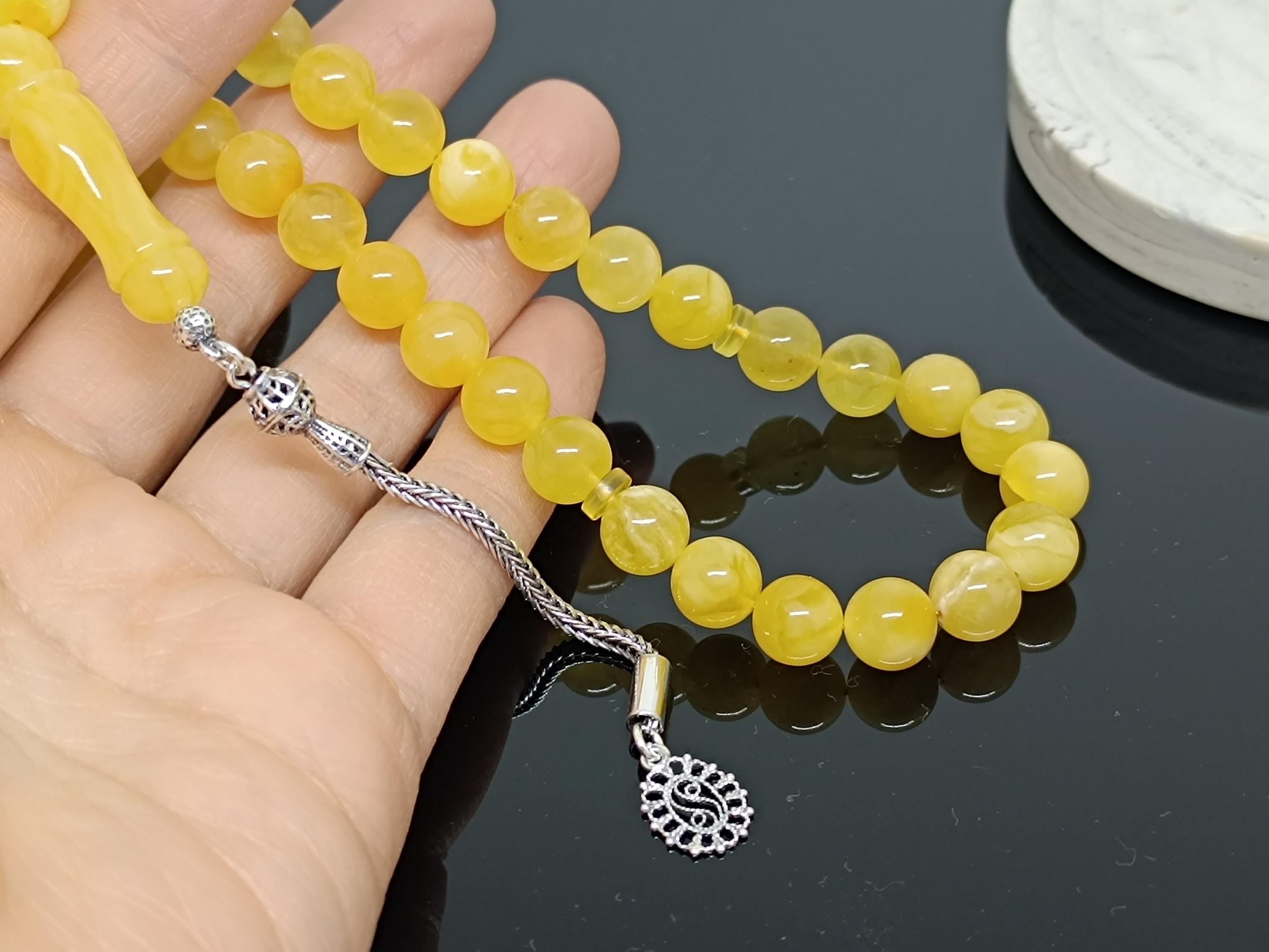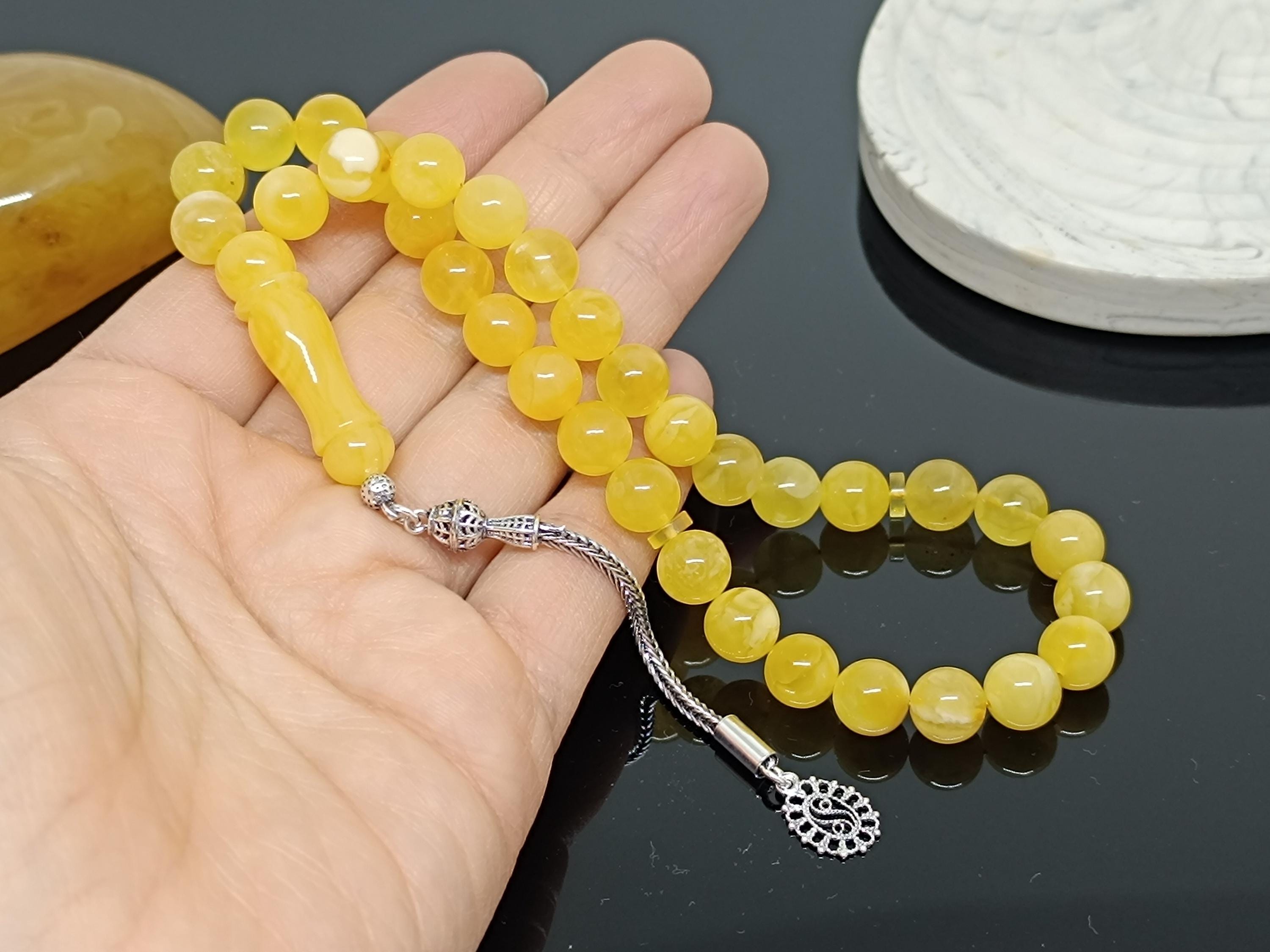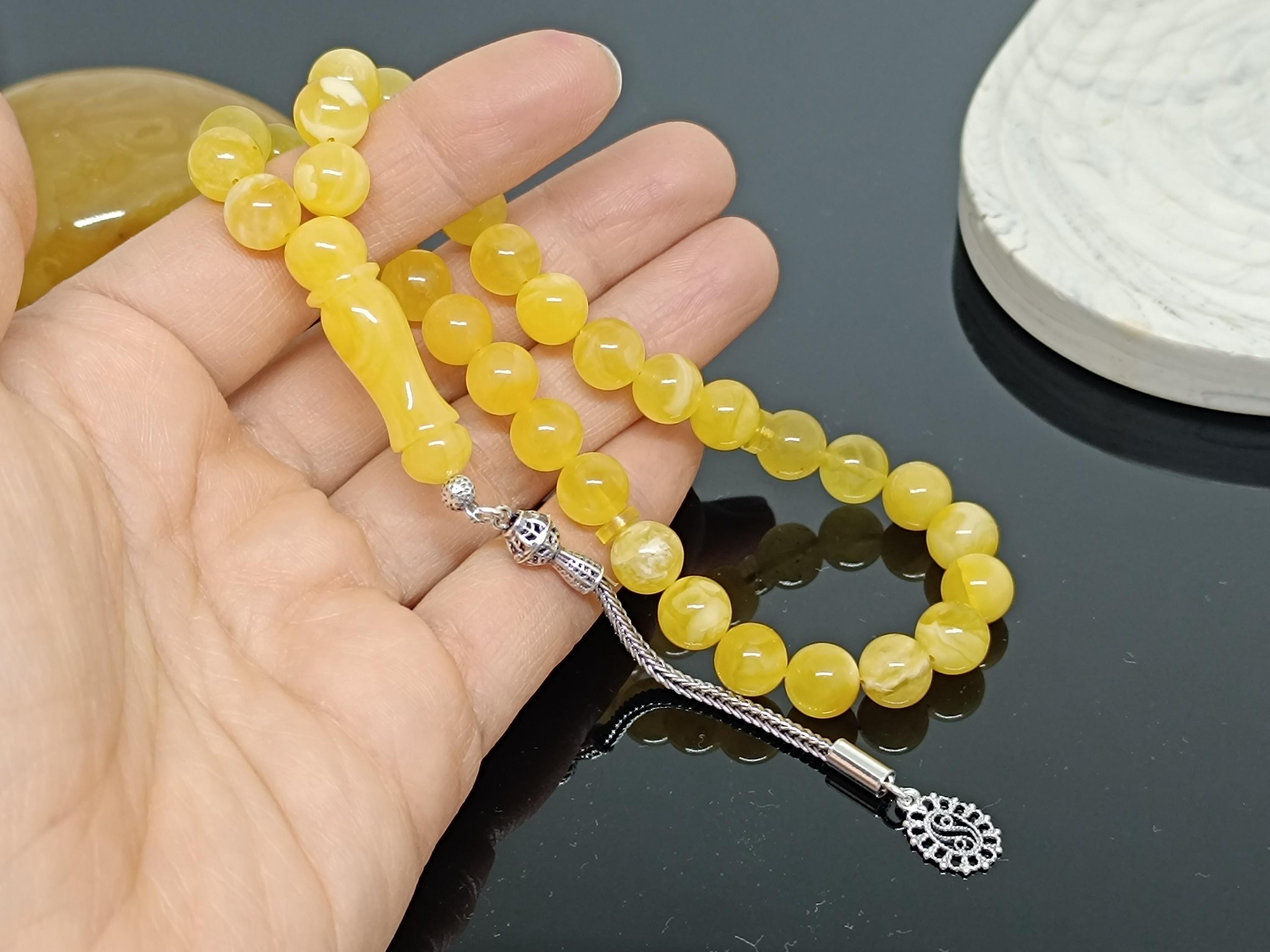 Natural Baltic Amber Rosary, 925 Sterling Silver Tassel, Islamic Prayer Beads, Healing Gemstone
