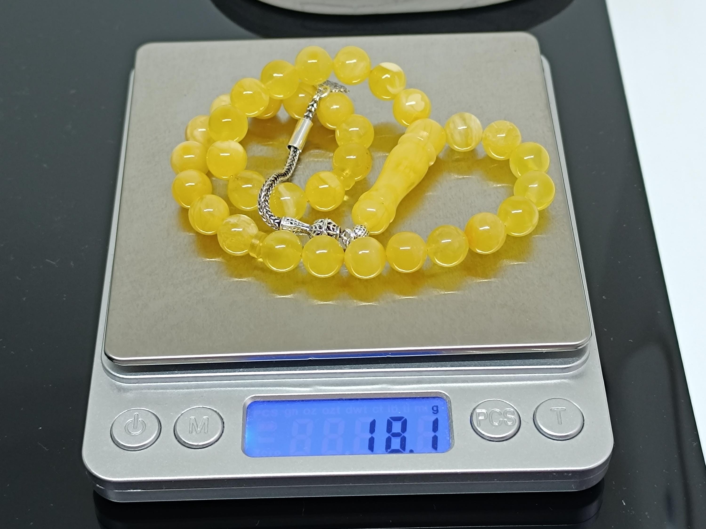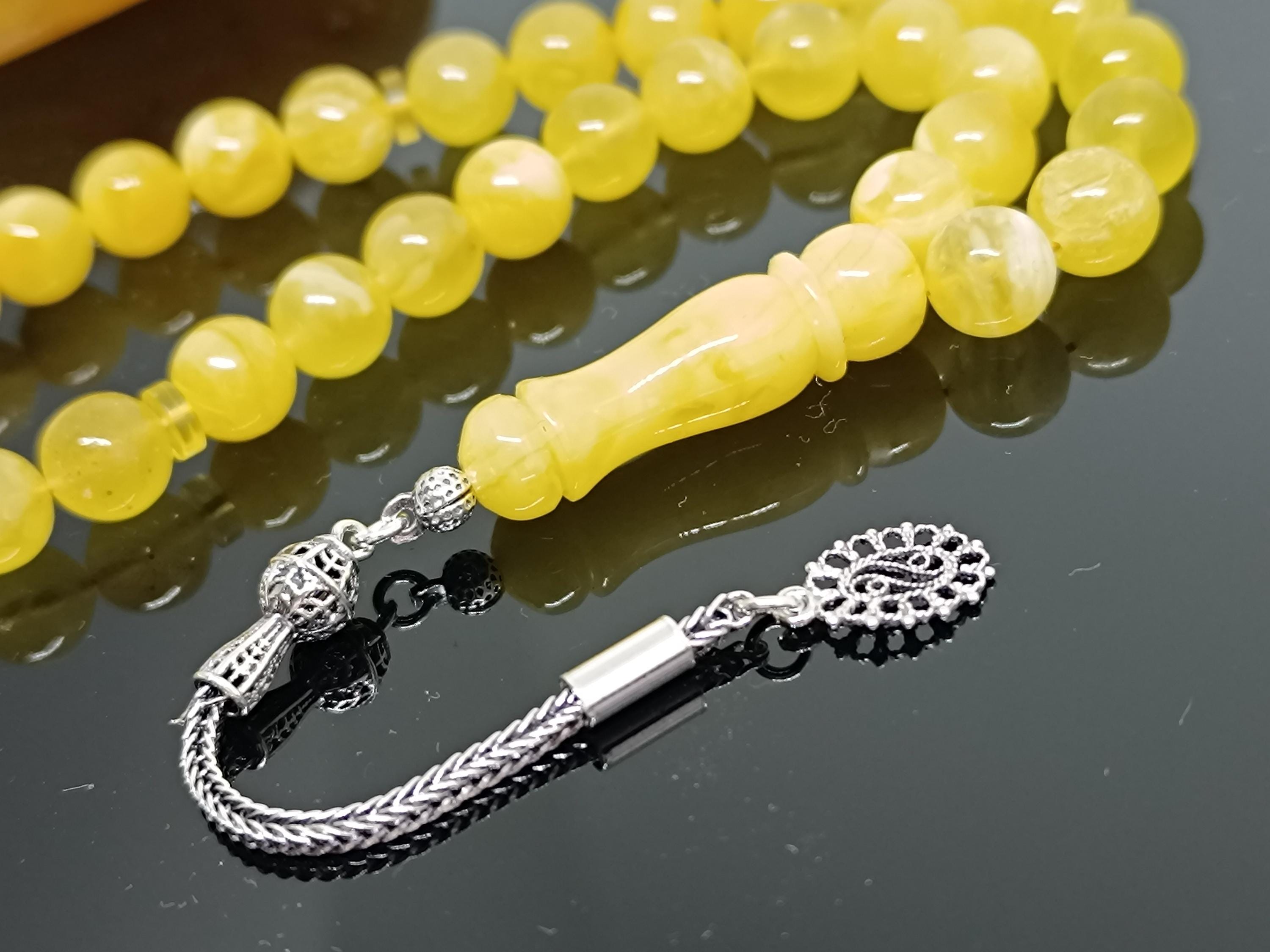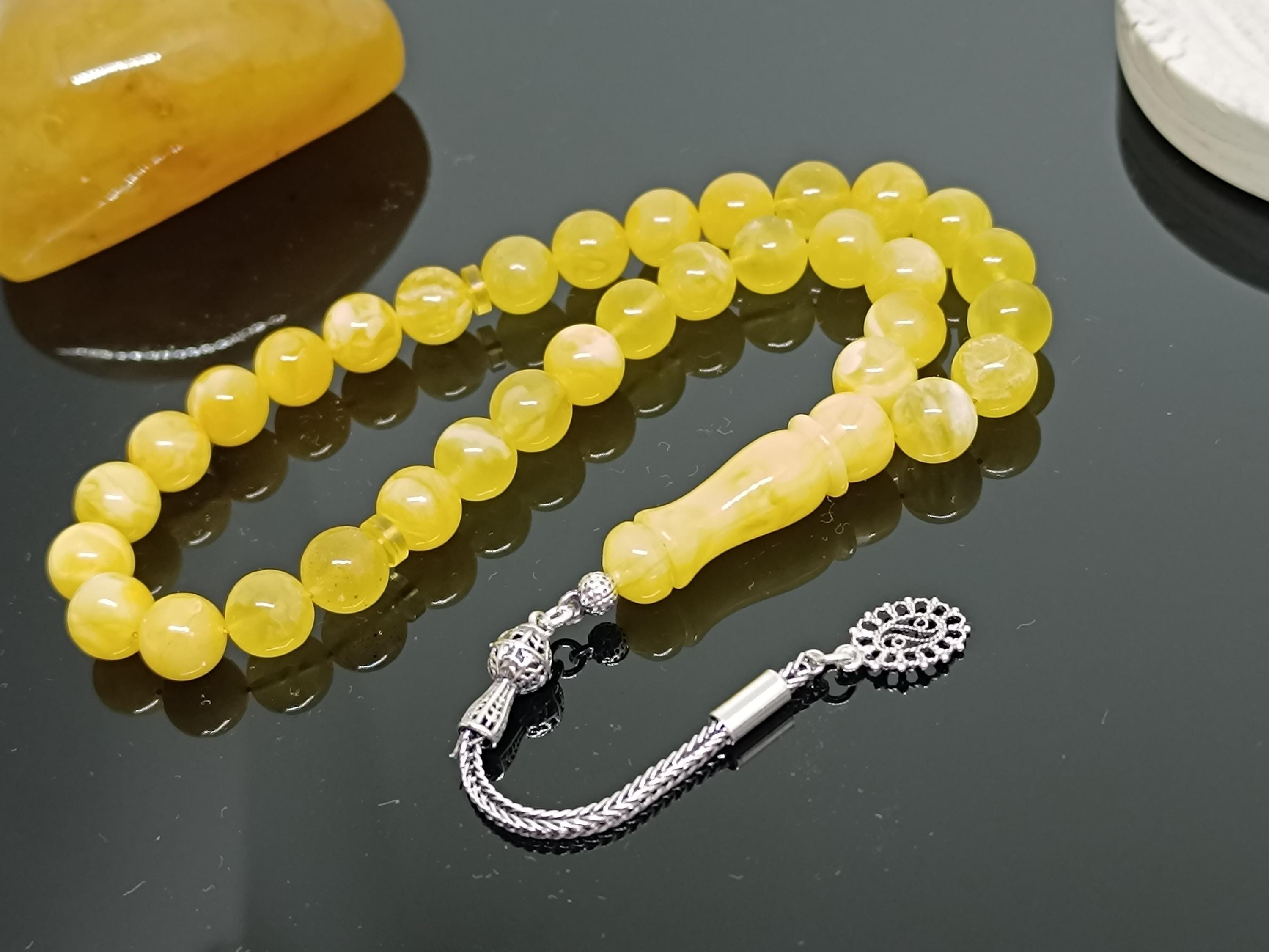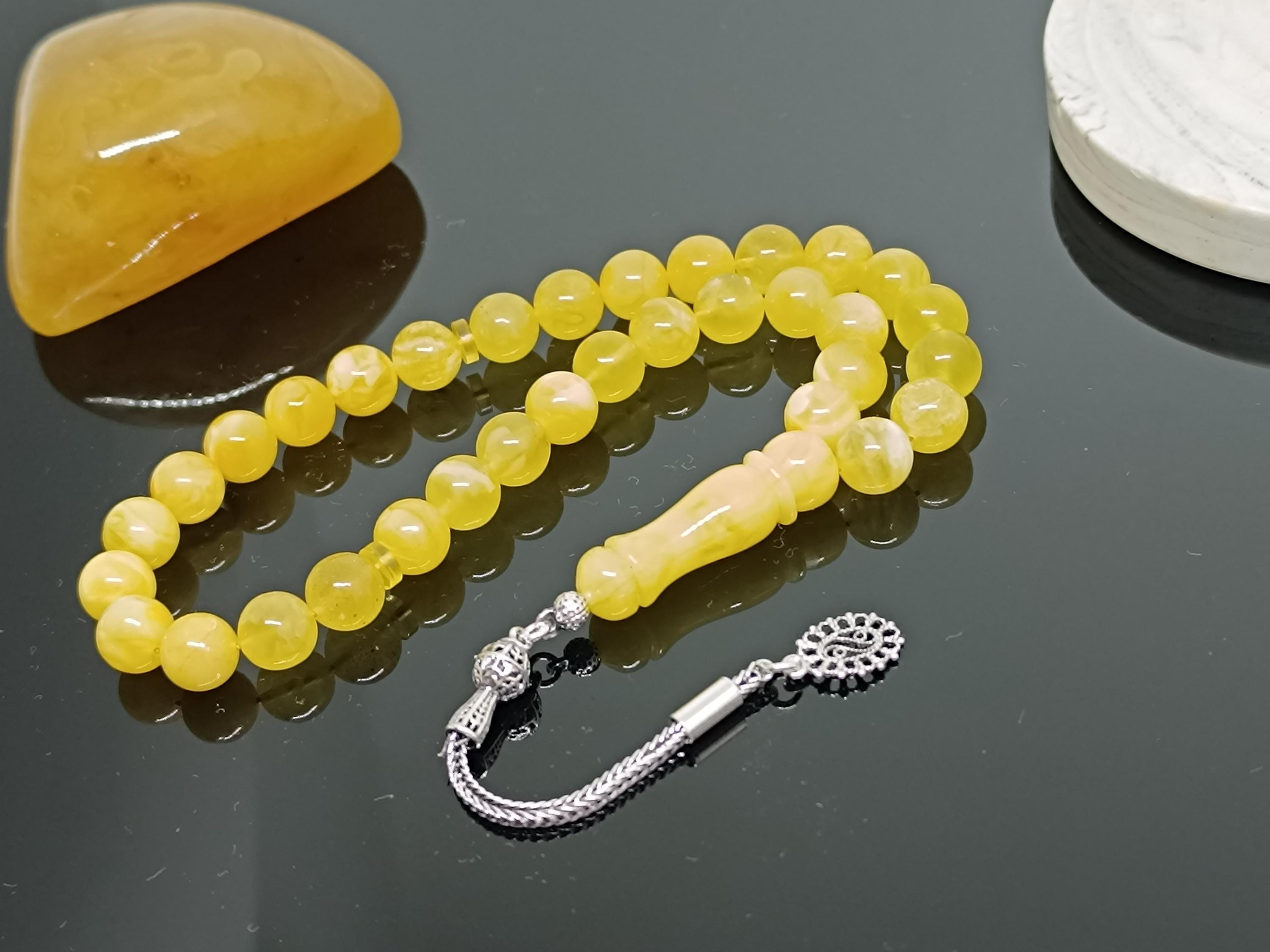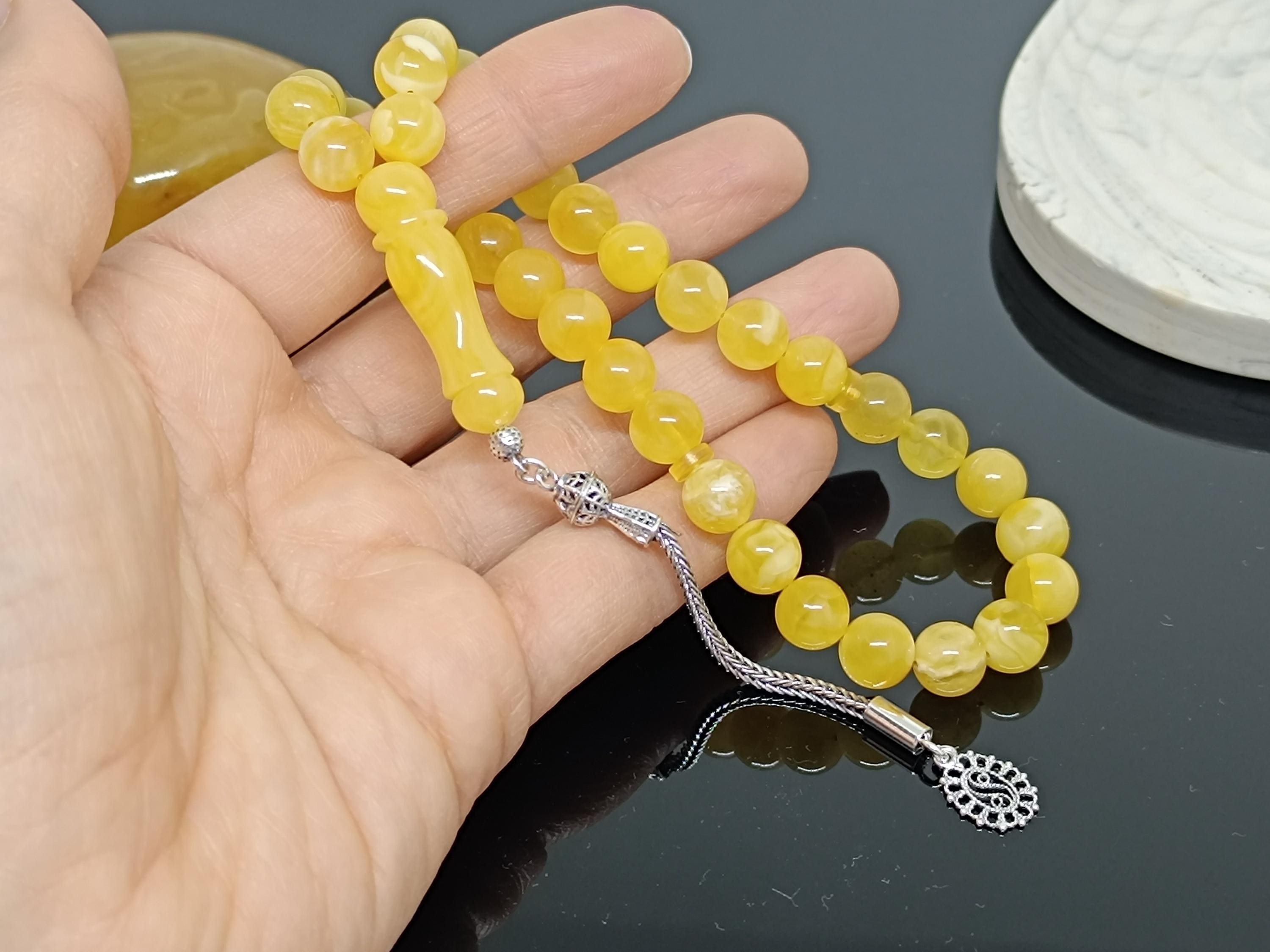 Natural Baltic Amber Rosary, 925 Sterling Silver Tassel, Islamic Prayer Beads, Healing Gemstone