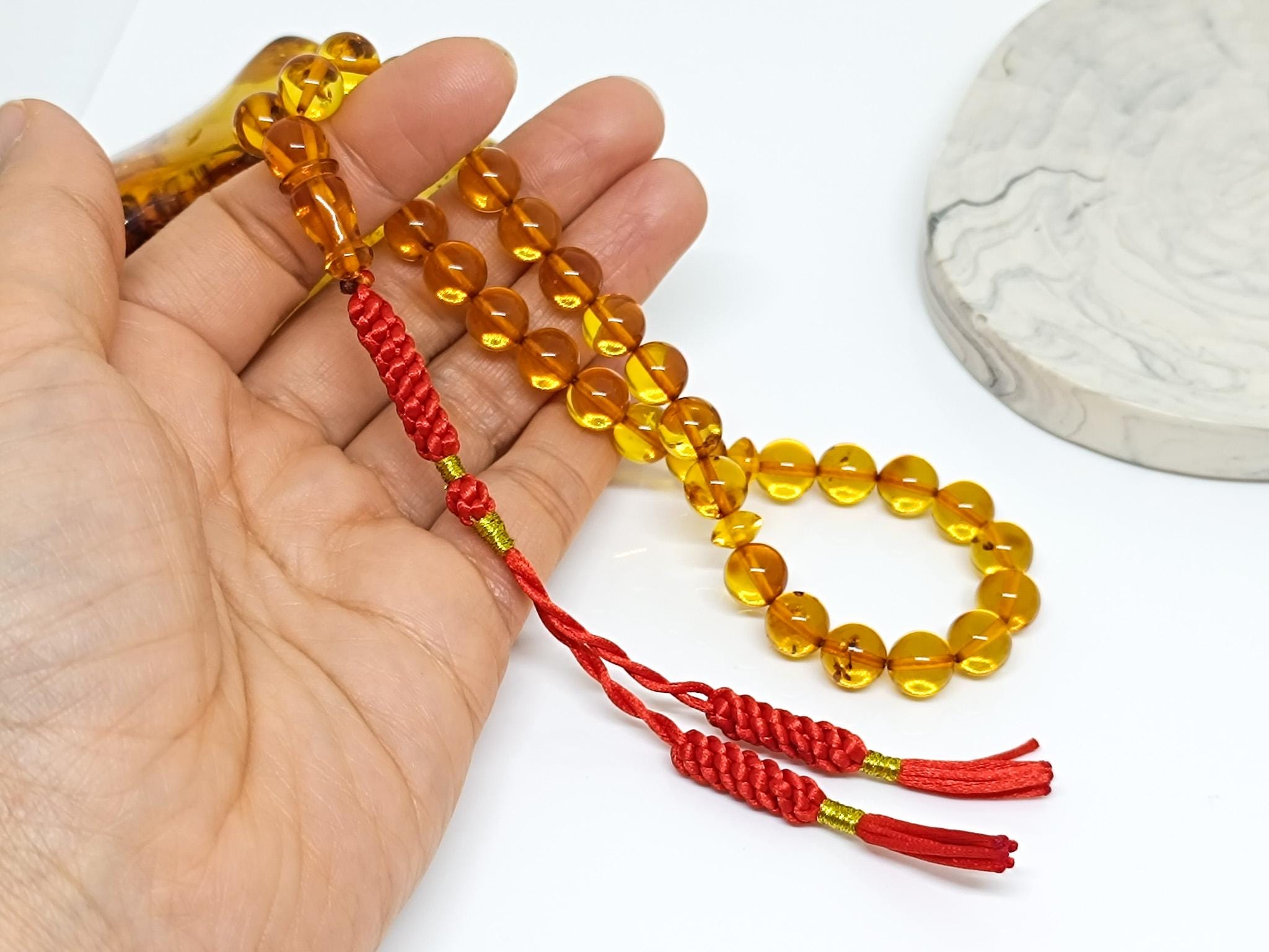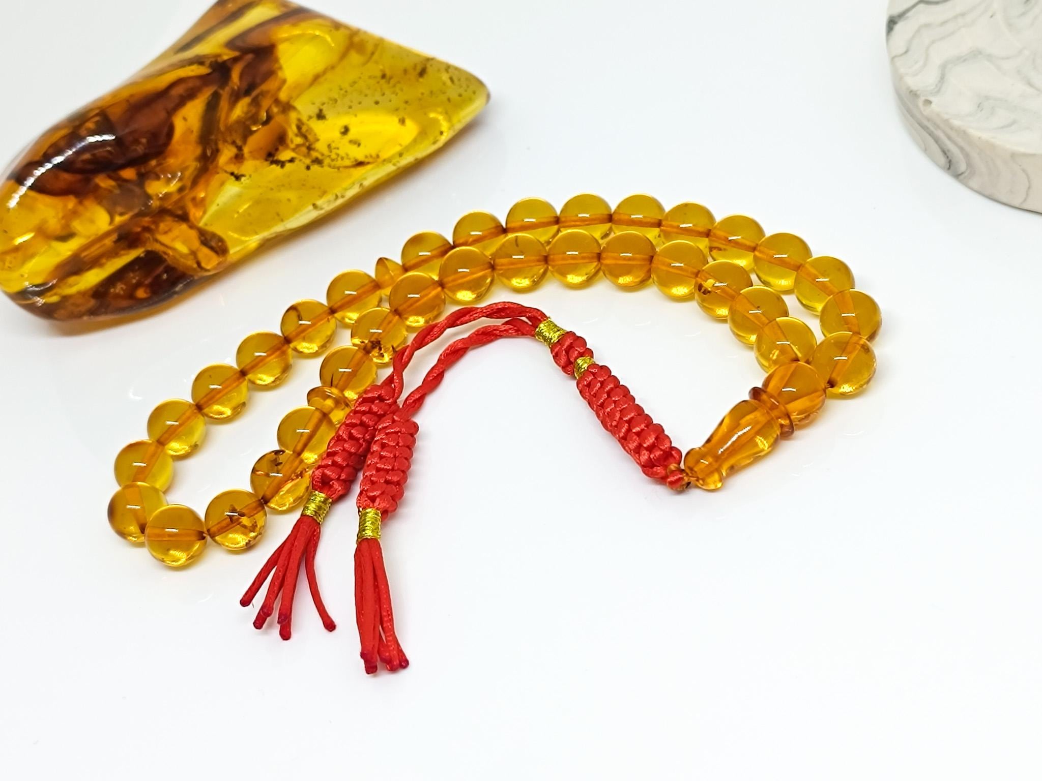100% Natural Baltic Amber Islamic Prayer 33 Beads. All amber stones are genuine, authentic, natural Baltic amber stones.